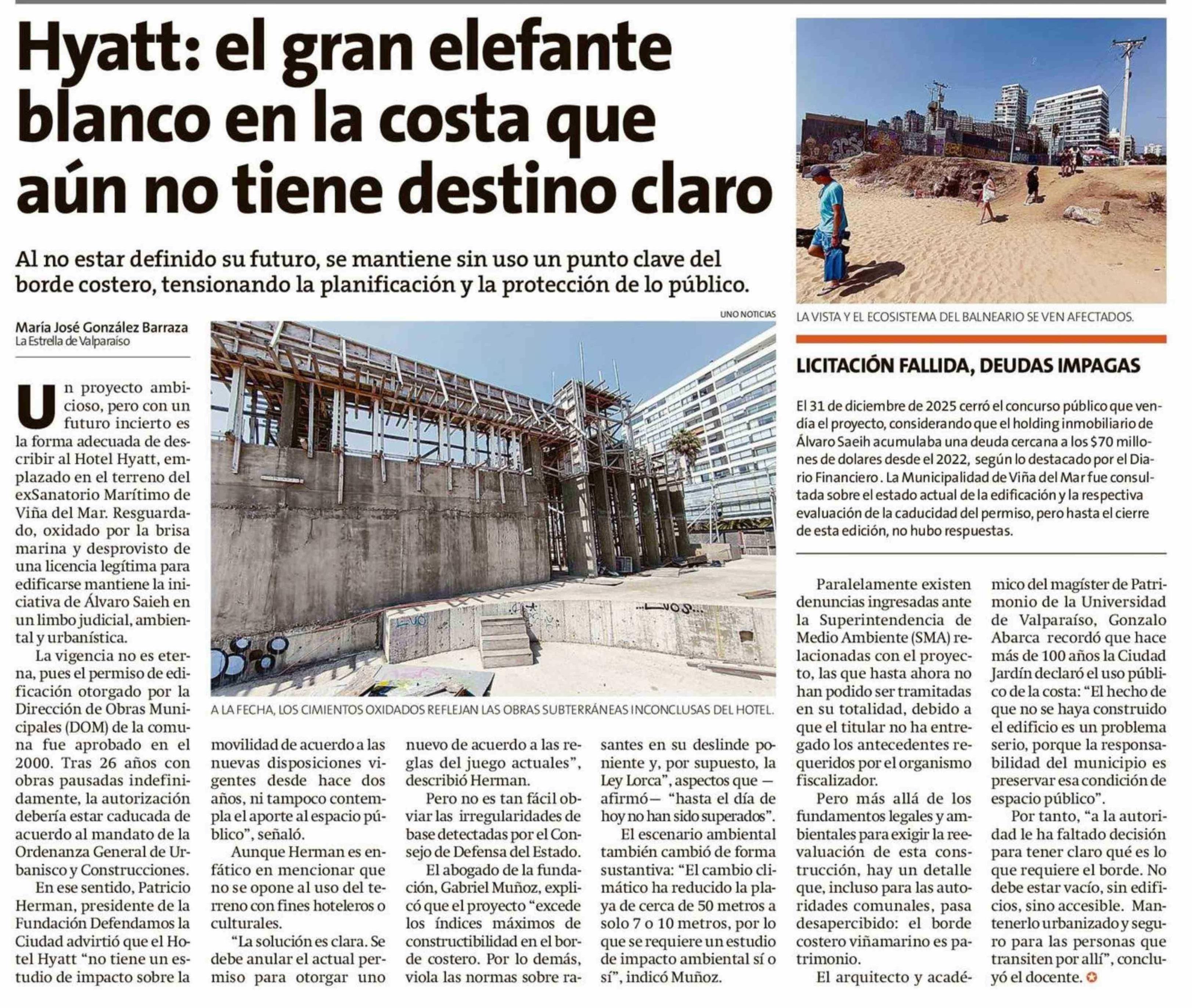Hyatt: el gran elefante blanco en la costa que aún no tiene destino claro 20-01-2026 La Estrella de Valparaíso |