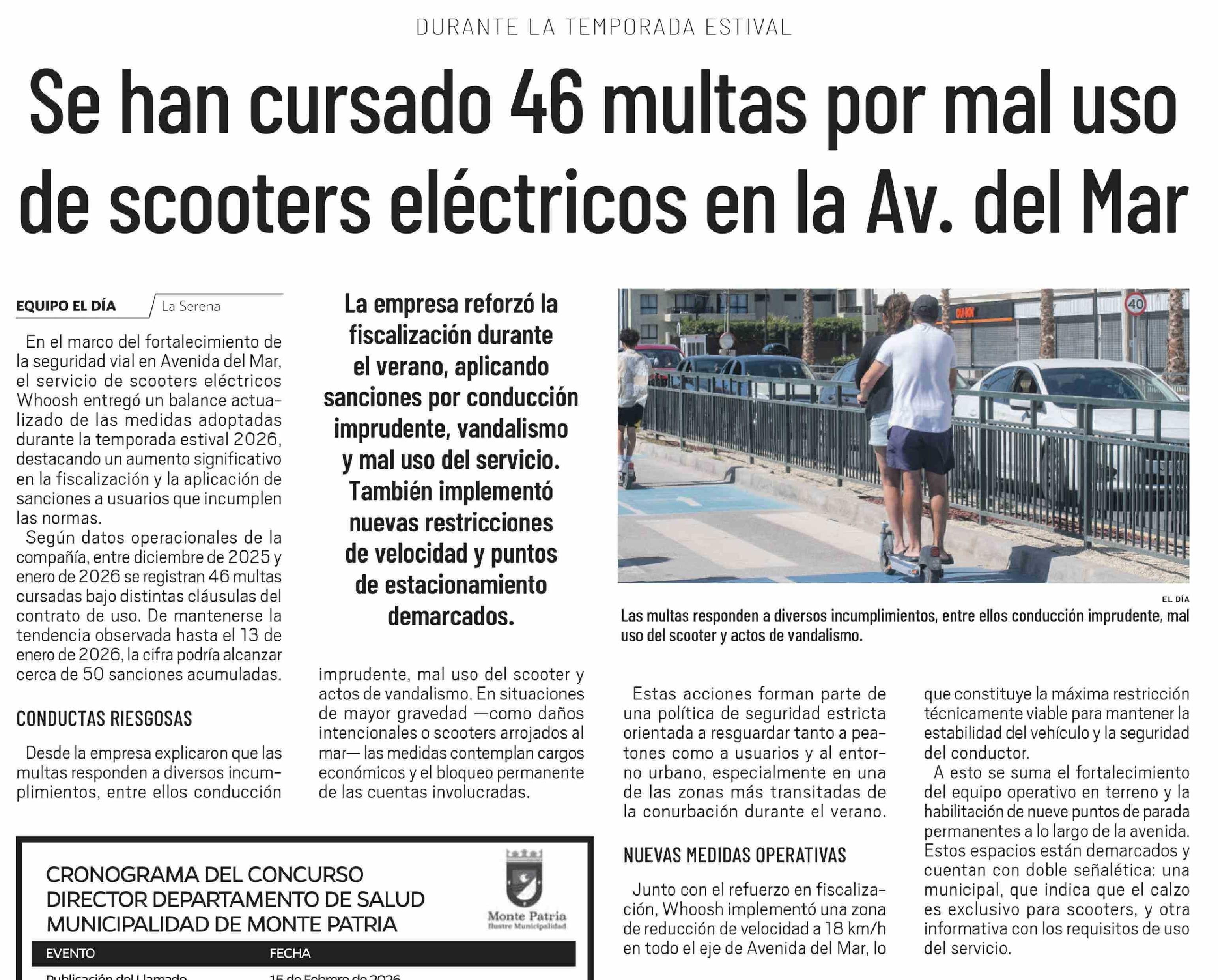 Se han cursado 46 multas por mal uso de scooters eléctricos en la Av. del Mar 15-02-2026 El Día |