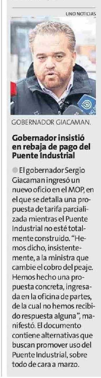 Gobernador insistió en rebaja de pago del Puente Industrial 10-01-2026 La Estrella de Concepción |