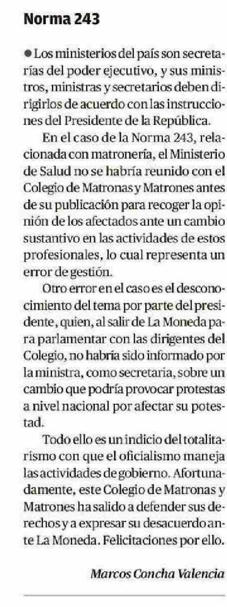 CARTAS: Norma 243 25-05-2025 El Austral de Osorno |