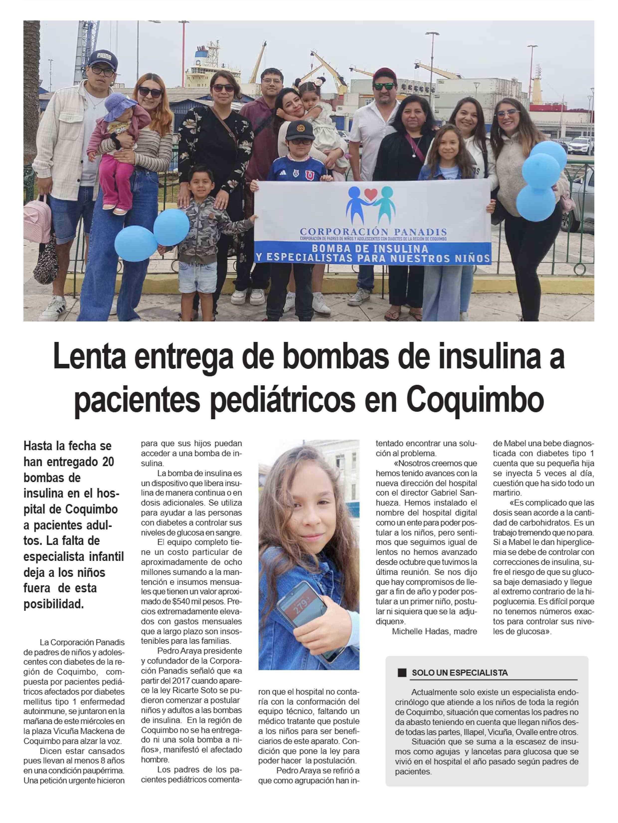 Lenta entrega de bombas de insulina a pacientes pediátricos en Coquimbo 30-01-2025 Diario la Región |
