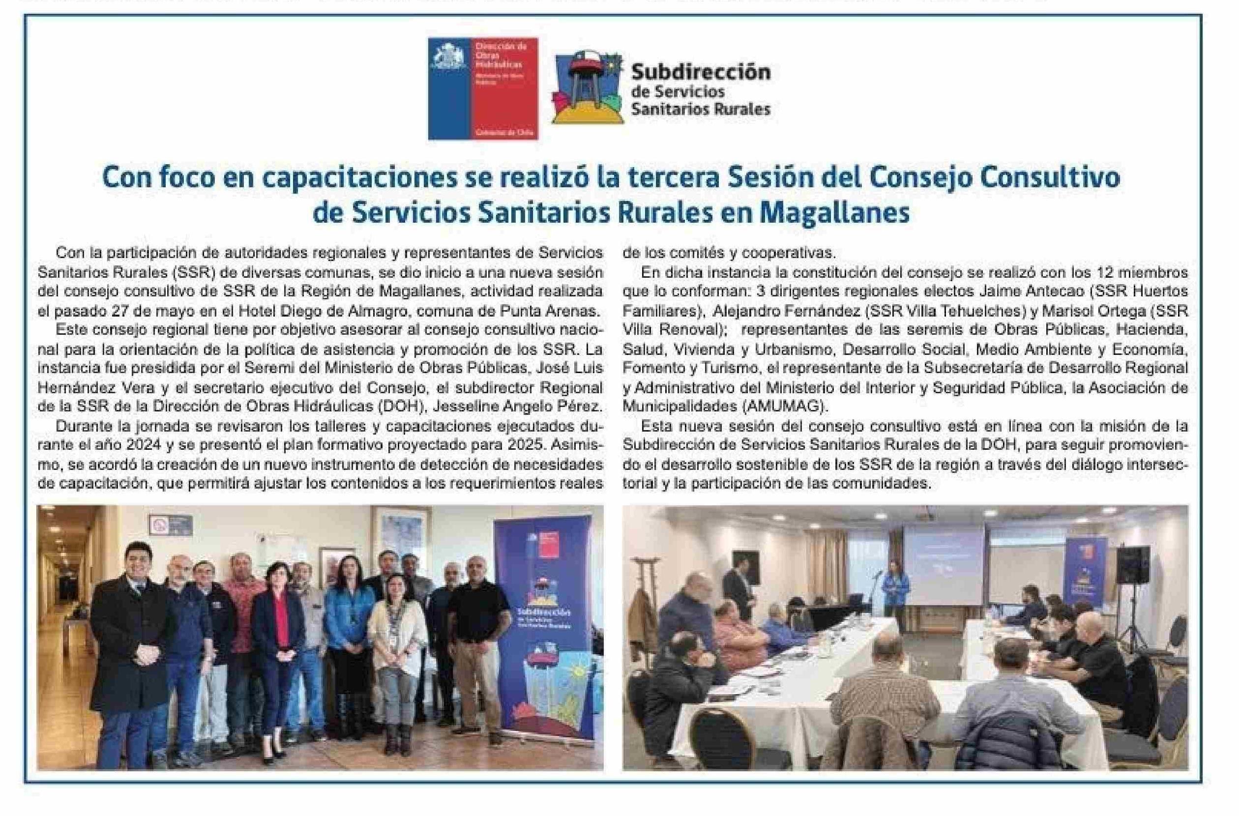 Con foco en capacitaciones se realizó la tercera Sesión del Consejo Consultivo de Servicios Sanitarios Rurales en Magallanes 13-06-2025 La Prensa Austral |