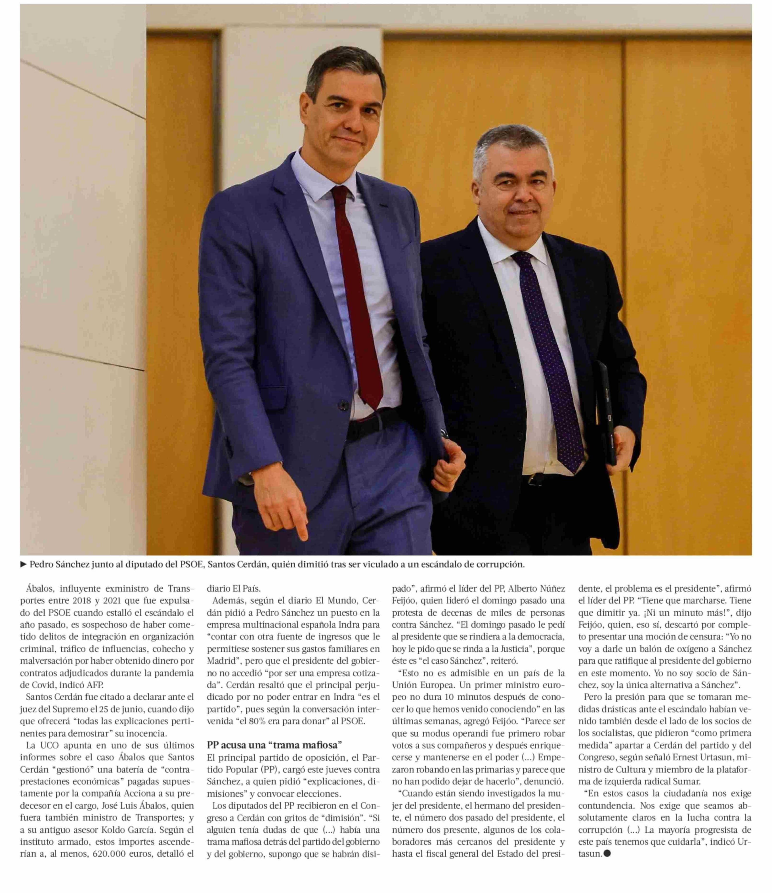 | Título: | Pedro Sánchez pide “perdón” por caso de presunta corrupción de dirigente socialista, pero descarta elecciones |