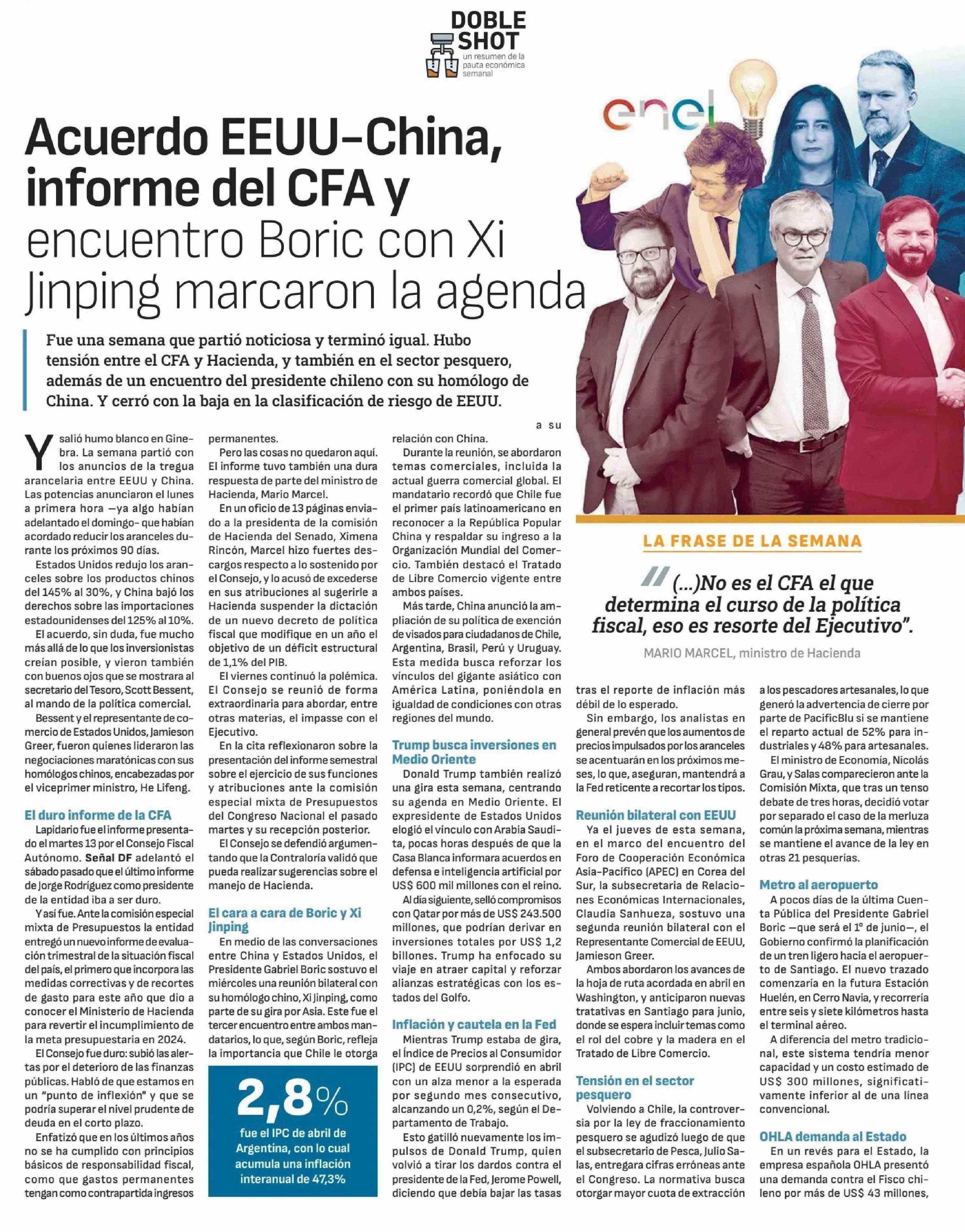 Acuerdo EEUU-China, informe del CFA y encuentro Borie con Xi Jinping marcaron la agenda 17-05-2025 Diario Financiero |