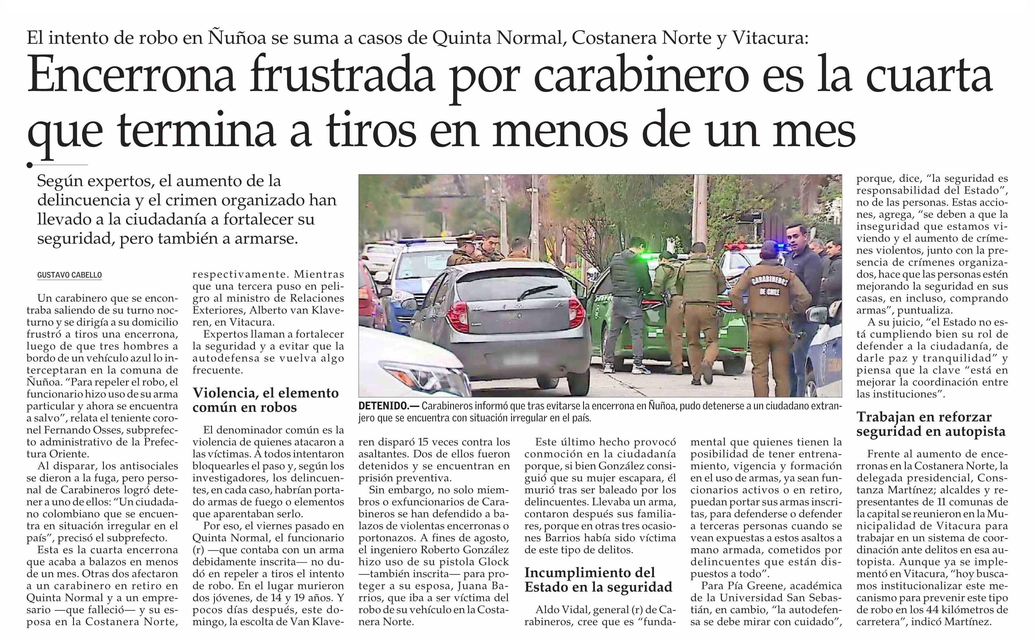 Encerrona frustrada por carabinero es la cuarta que termina a tiros en menos de un mes 13-09-2023 El Mercurio |
