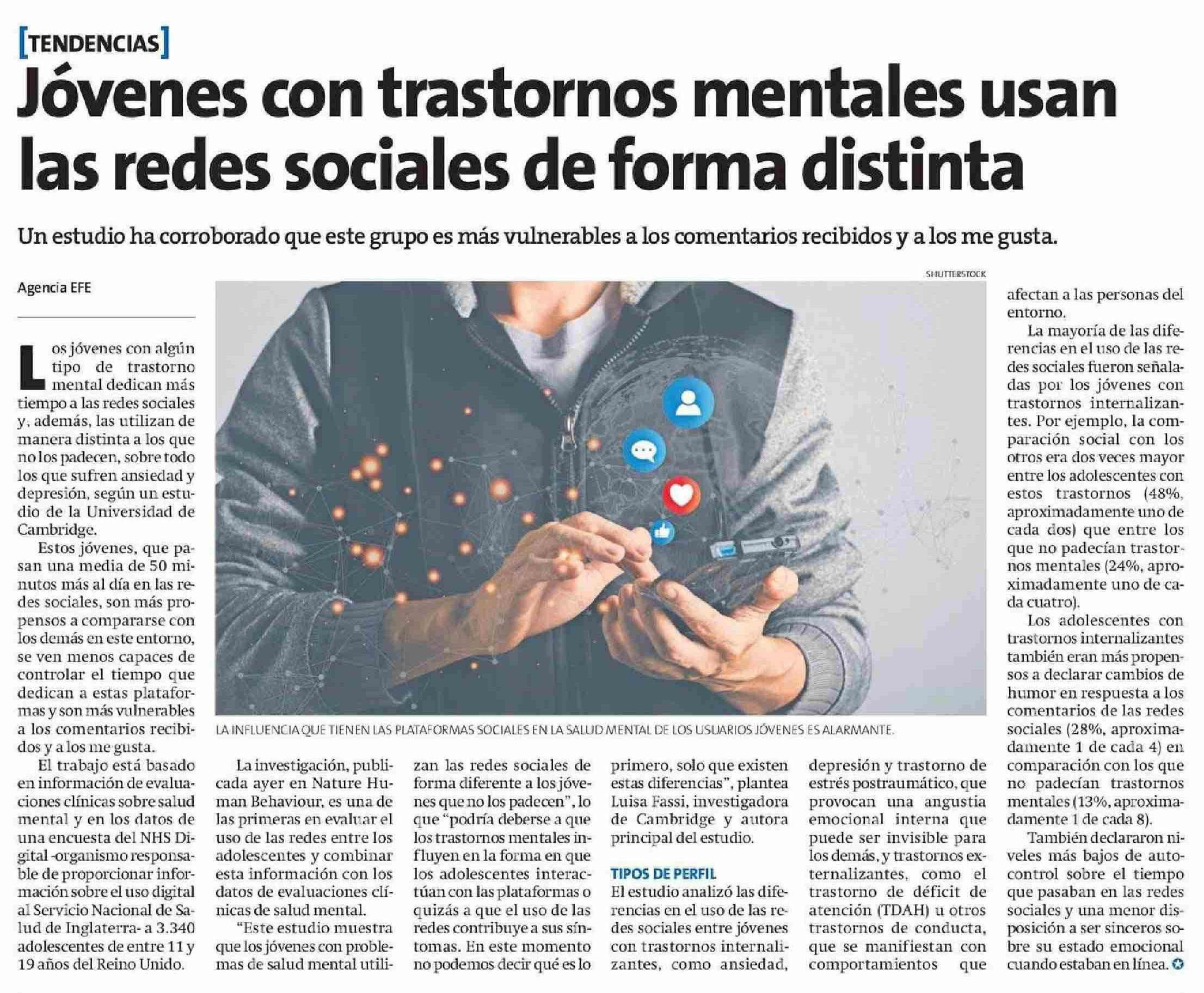Jóvenes con trastornos mentales usan las redes sociales de forma distinta 09-05-2025 La Estrella de Arica |