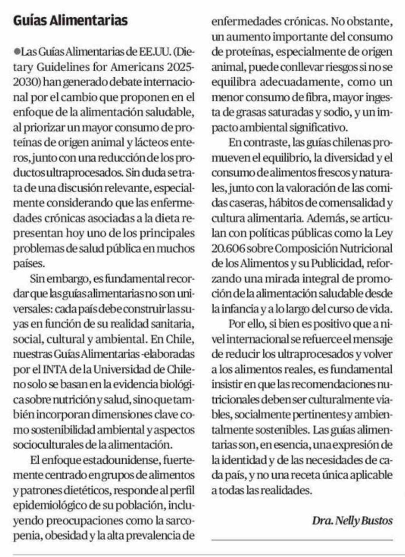 Cartas: Guías Alimentarias 23-01-2026 El Mercurio de Antofagasta |