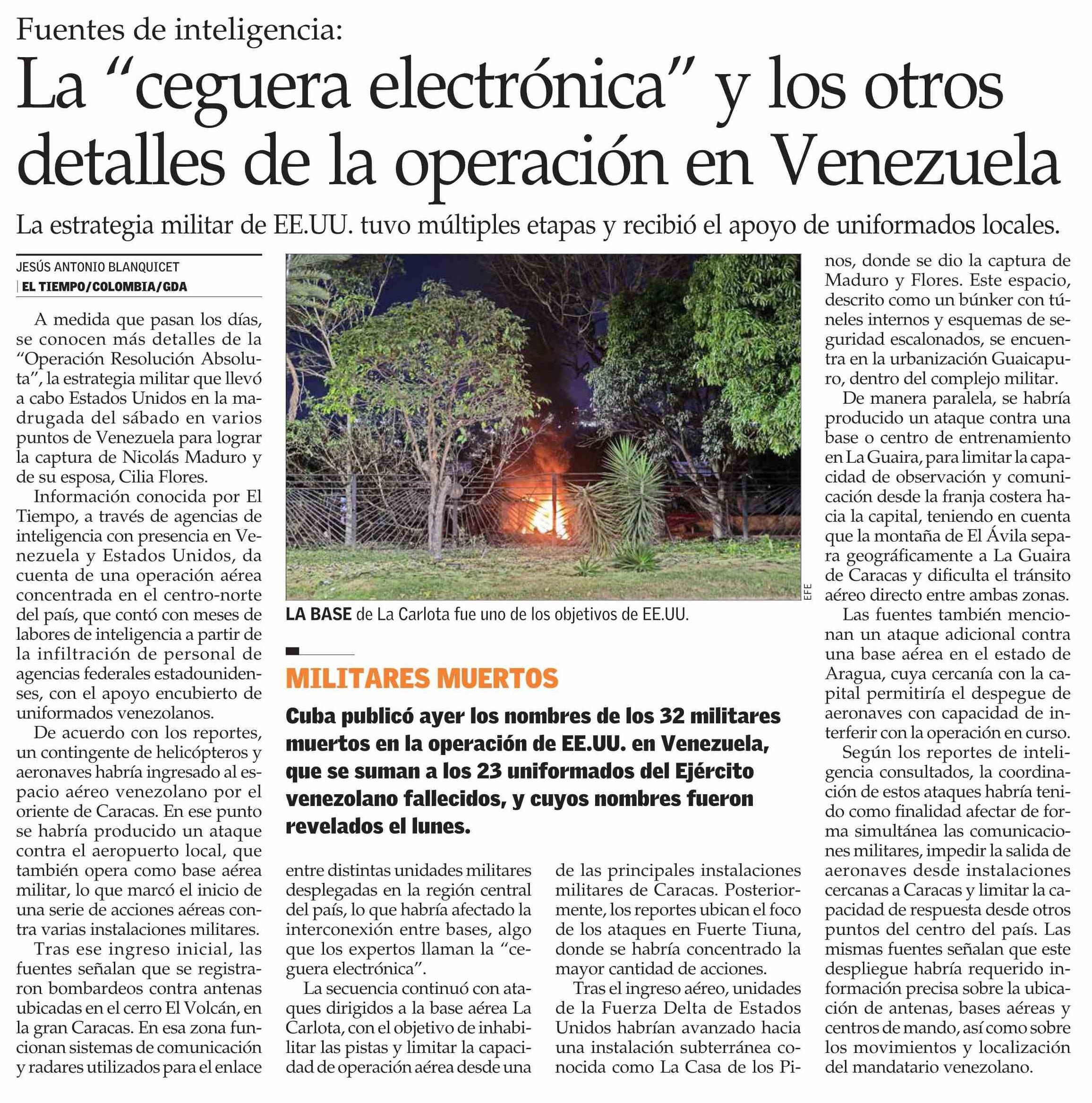 La “ceguera electrónica” y los otros detalles de la operación en Venezuela 07-01-2026 El Mercurio |