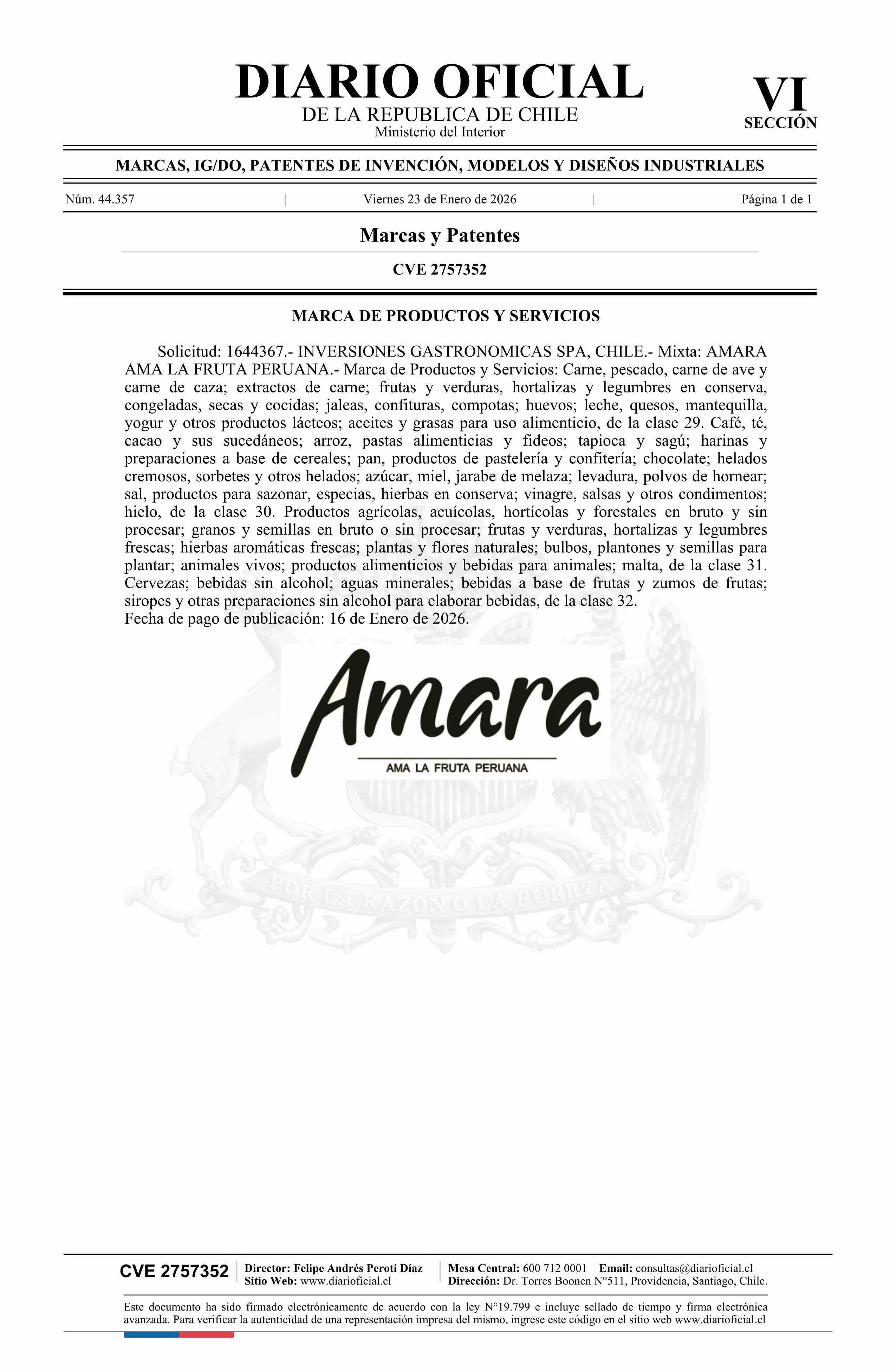 Solicitud número 1644367.- AMARA AMA LA FRUTA PERUANA