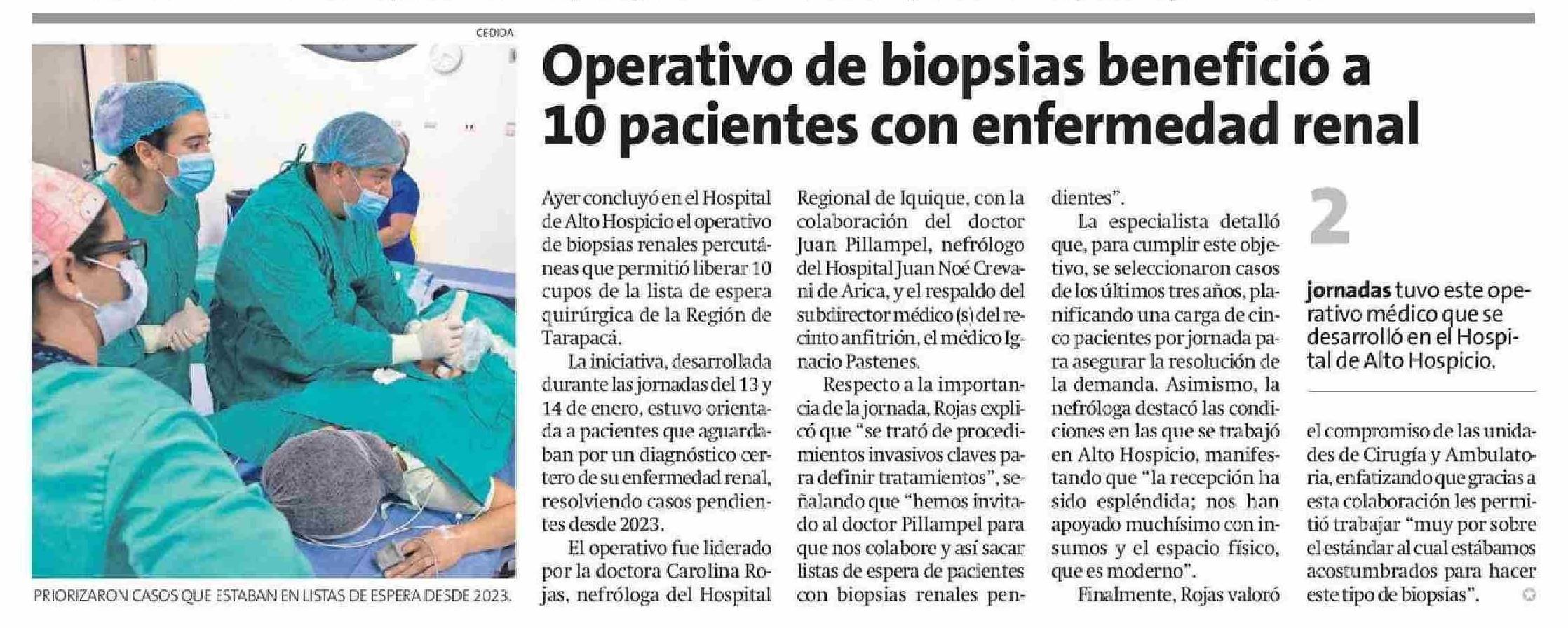 Operativo de biopsias benefició a 10 pacientes con enfermedad renal 15-01-2026 La Estrella de Iquique |
