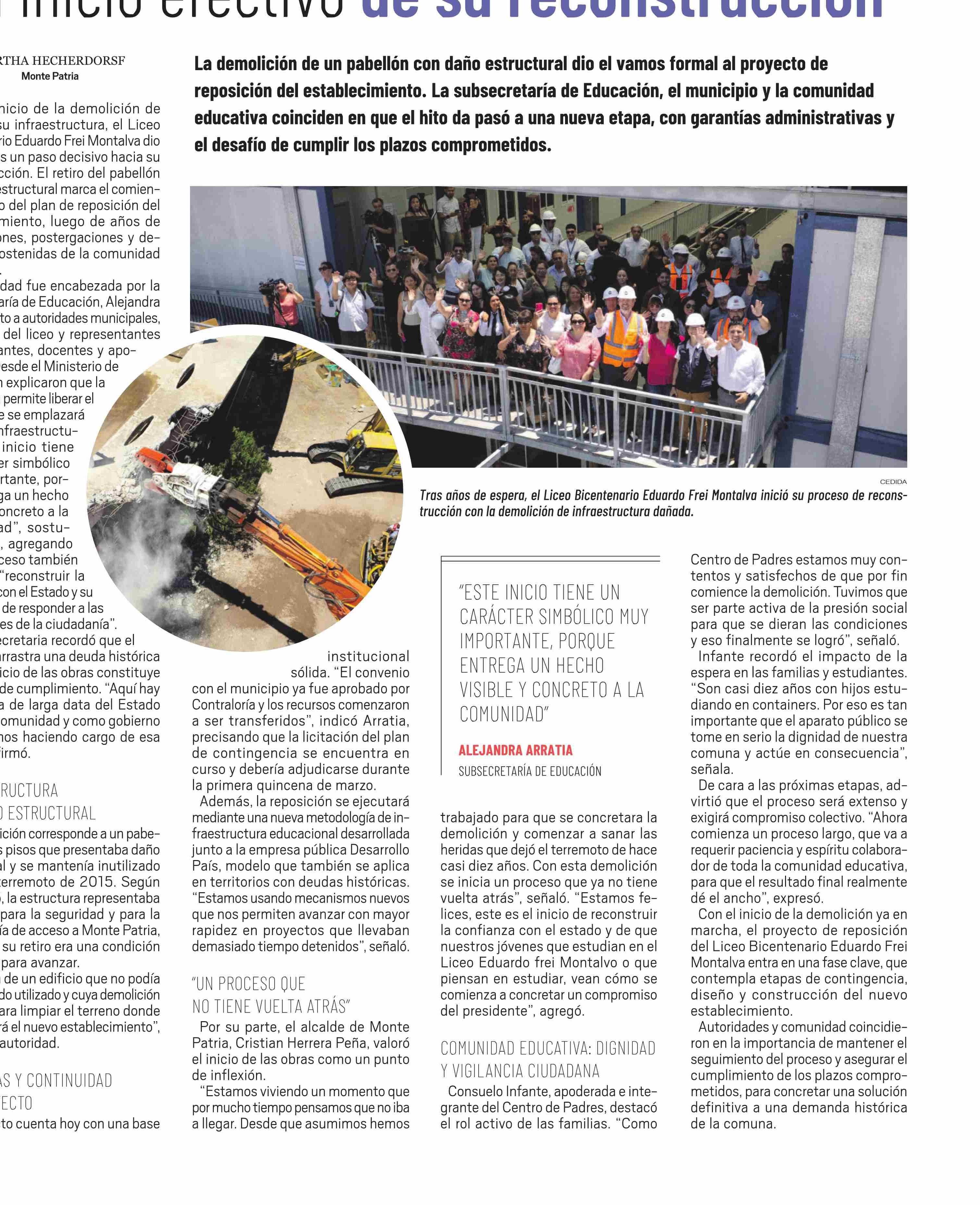 Título: Demolición del Liceo Eduardo Frei marca el inicio efectivo de su reconstrucción