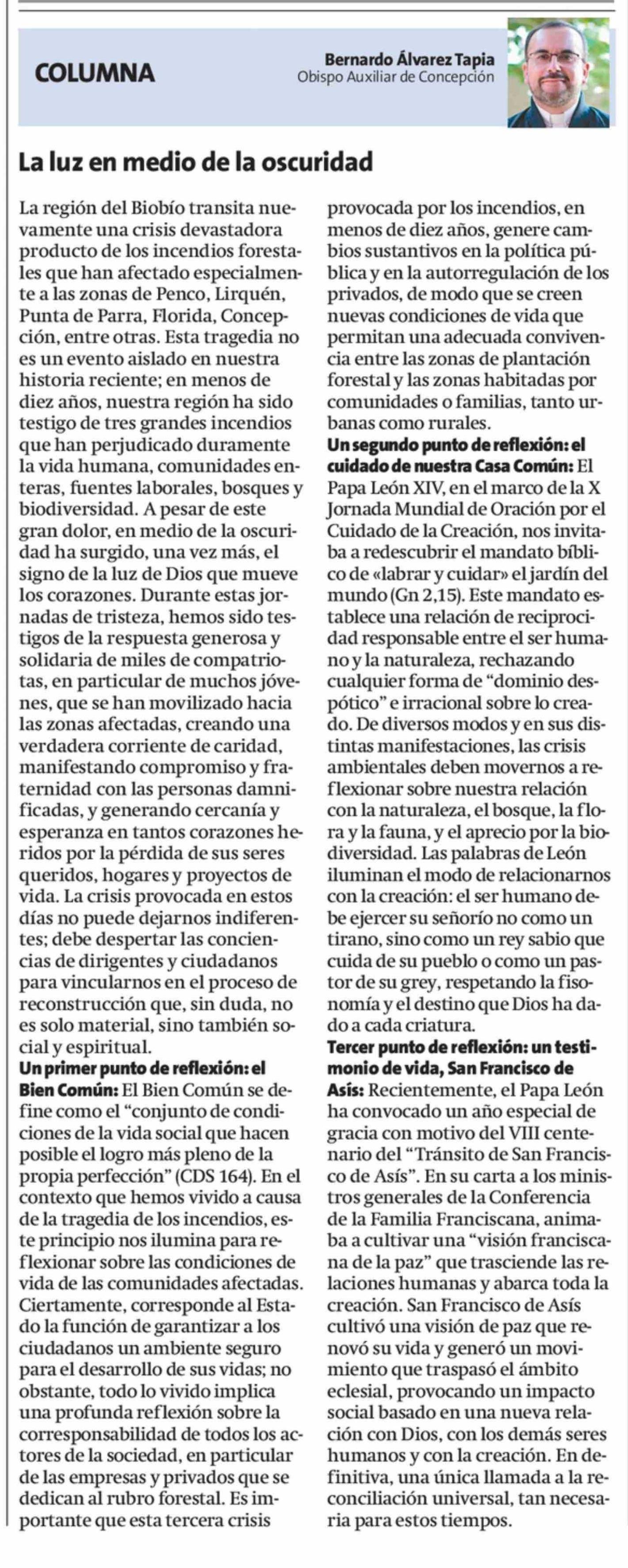Columnas de Opinión: La luz en medio de la oscuridad 07-02-2026 La Estrella de Concepción |