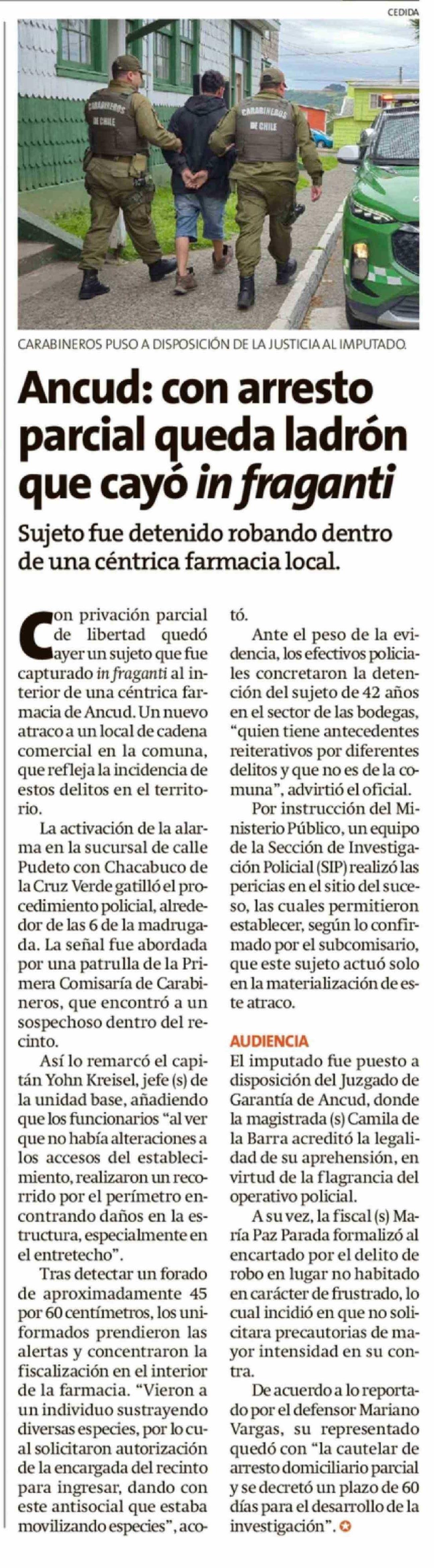 Título: Ancud: con arresto parcial queda ladrón que cayó in fraganti