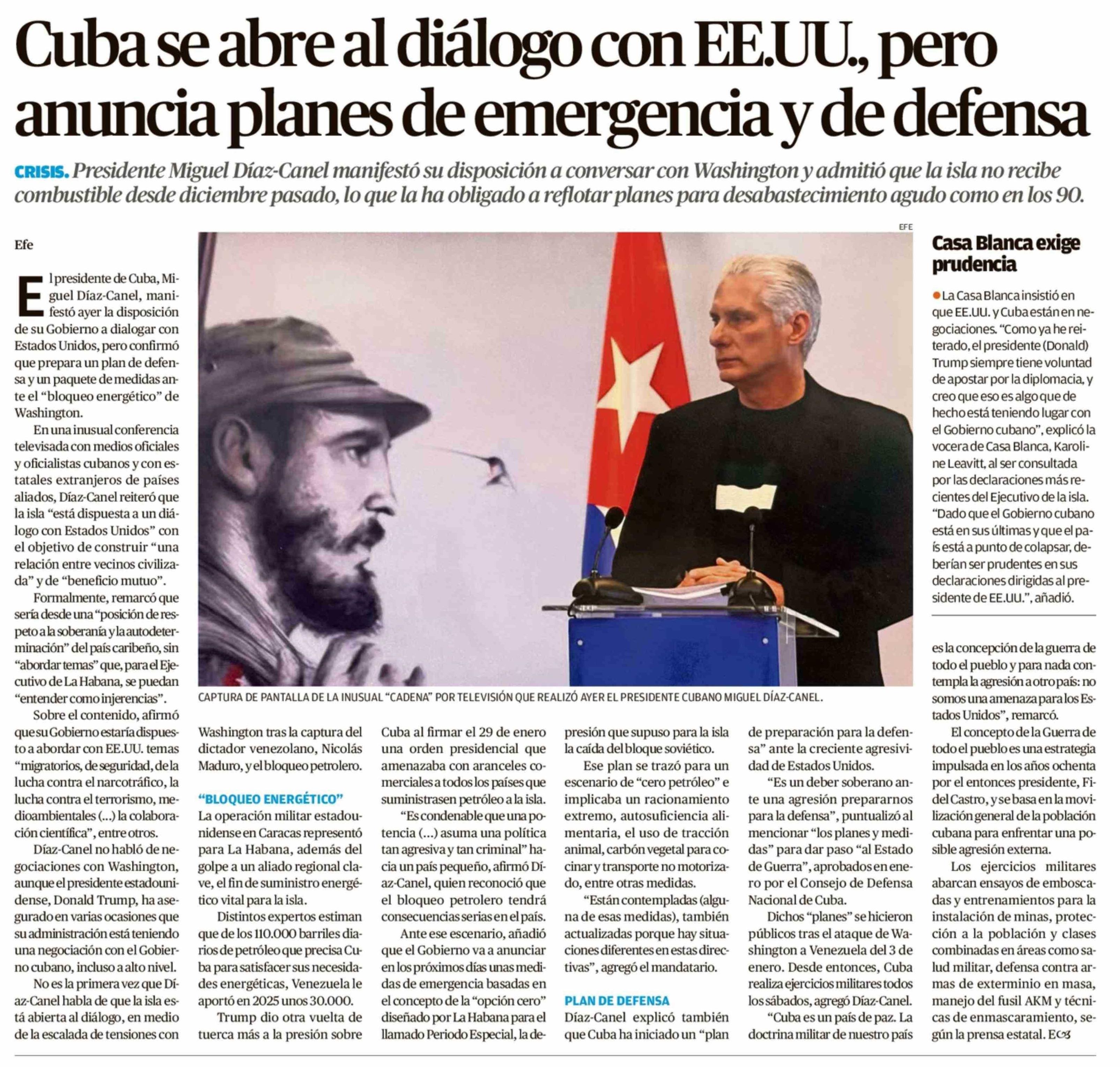 Título: Cuba se abre al diálogo con EE.UU., pero anuncia planes de emergencia y de defensa