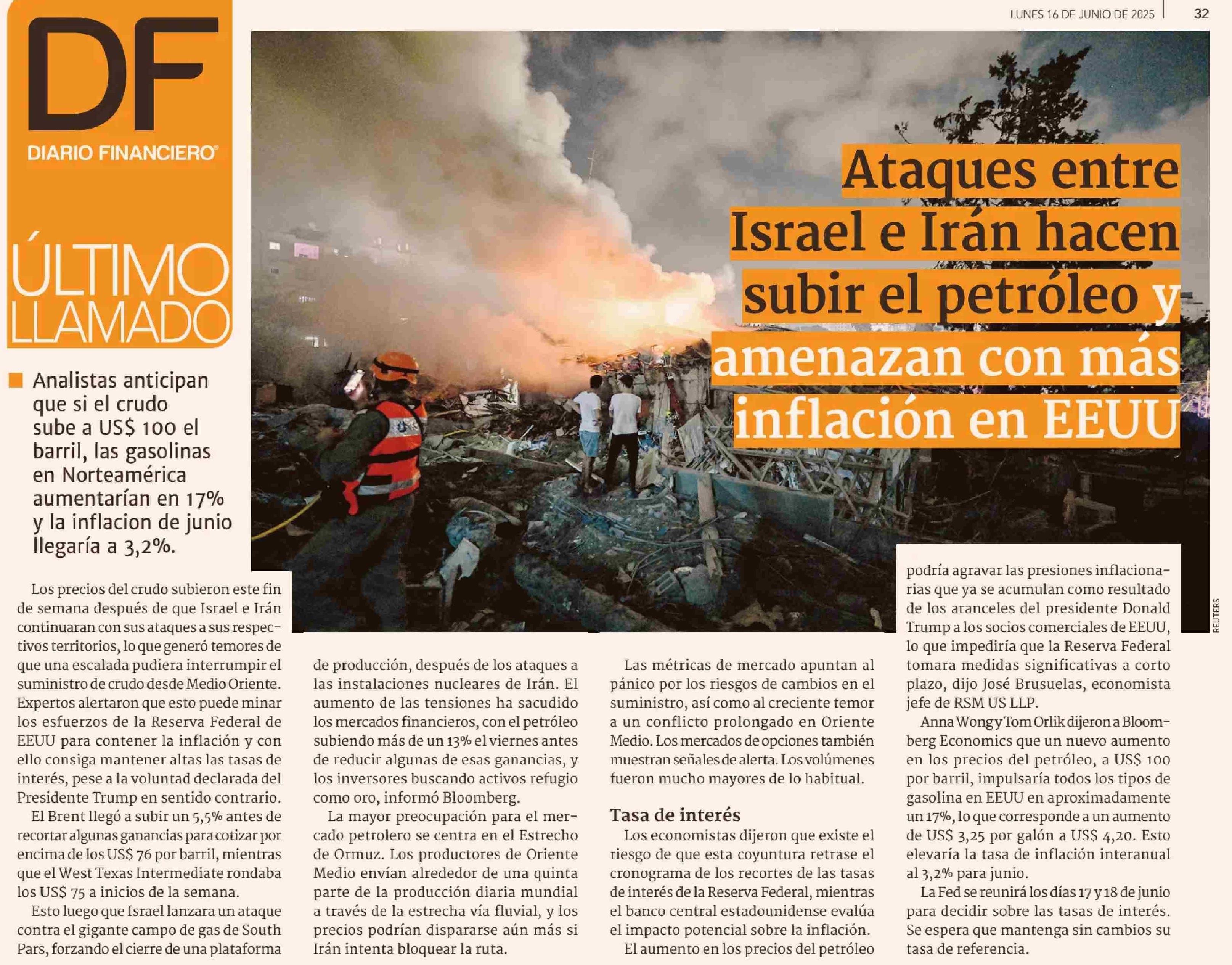 Ataques entre Israel e Irán hacen subir el petróleo y amenazan con más inflación en EEUU 16-06-2025 Diario Financiero |