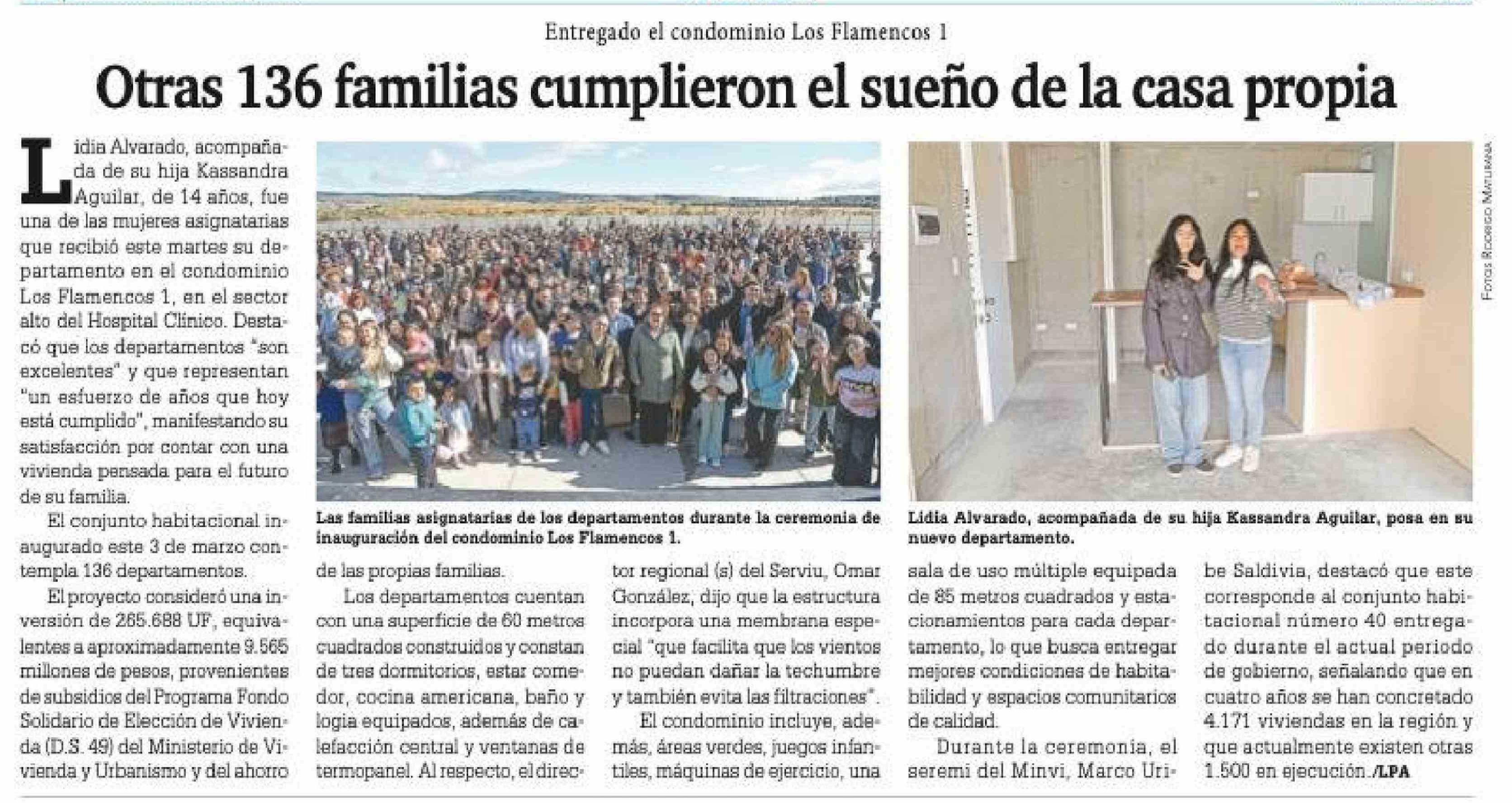 Otras 136 familias cumplieron el sueño de la casa propia 04-03-2026 La Prensa Austral |