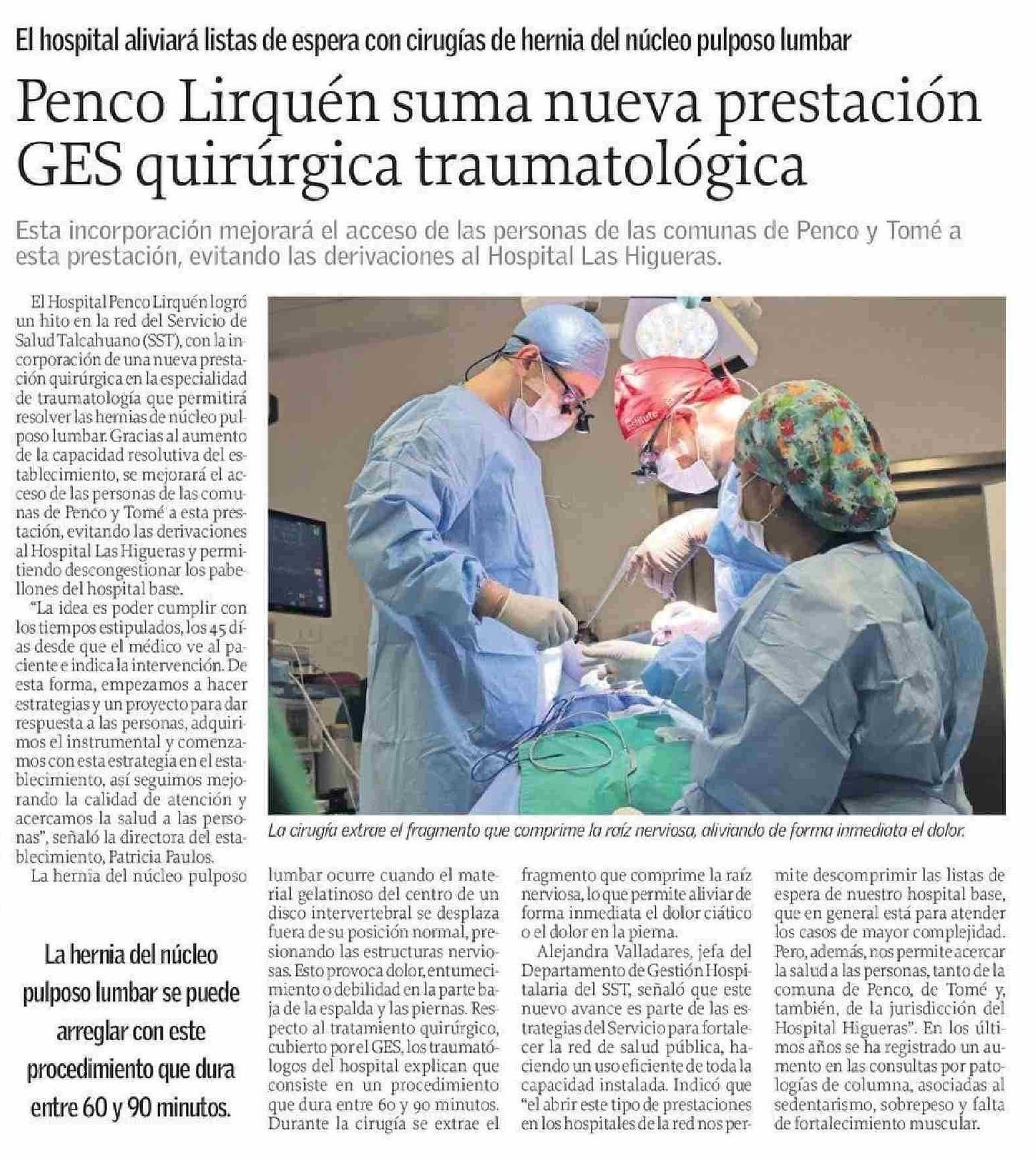 | Título: | Penco Lirquén suma nueva prestación GES quirúrgica traumatológica |
