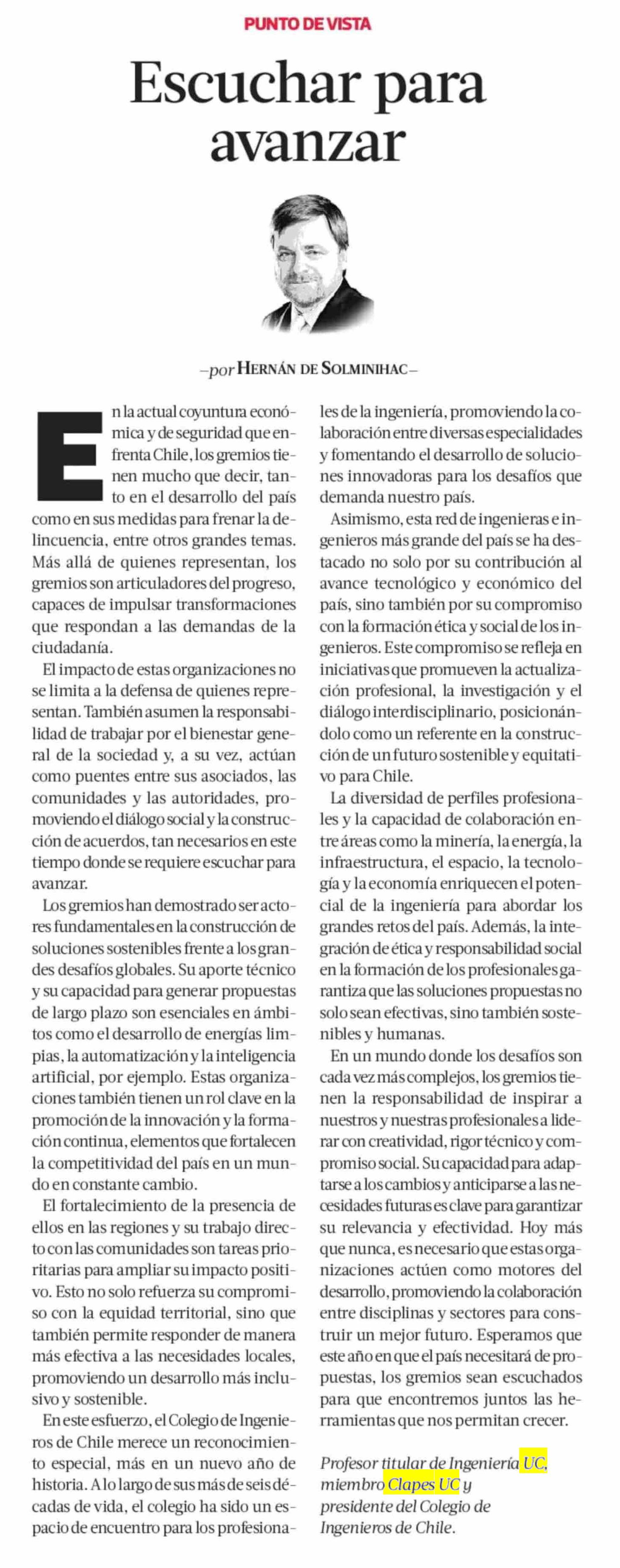 COLUMNAS DE OPINIÓN: Escuchar para avanzar 05-02-2025 La Tercera |