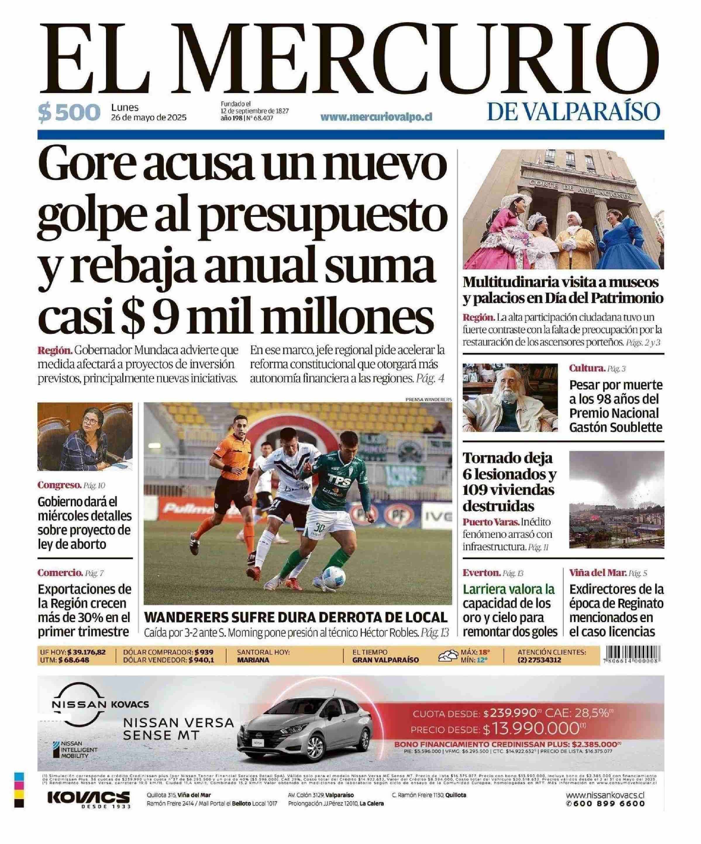 PORTADA EL MERCURIO DE VALPARAÍSO - CHILE 26-05-2025 El Mercurio de Valparaíso |