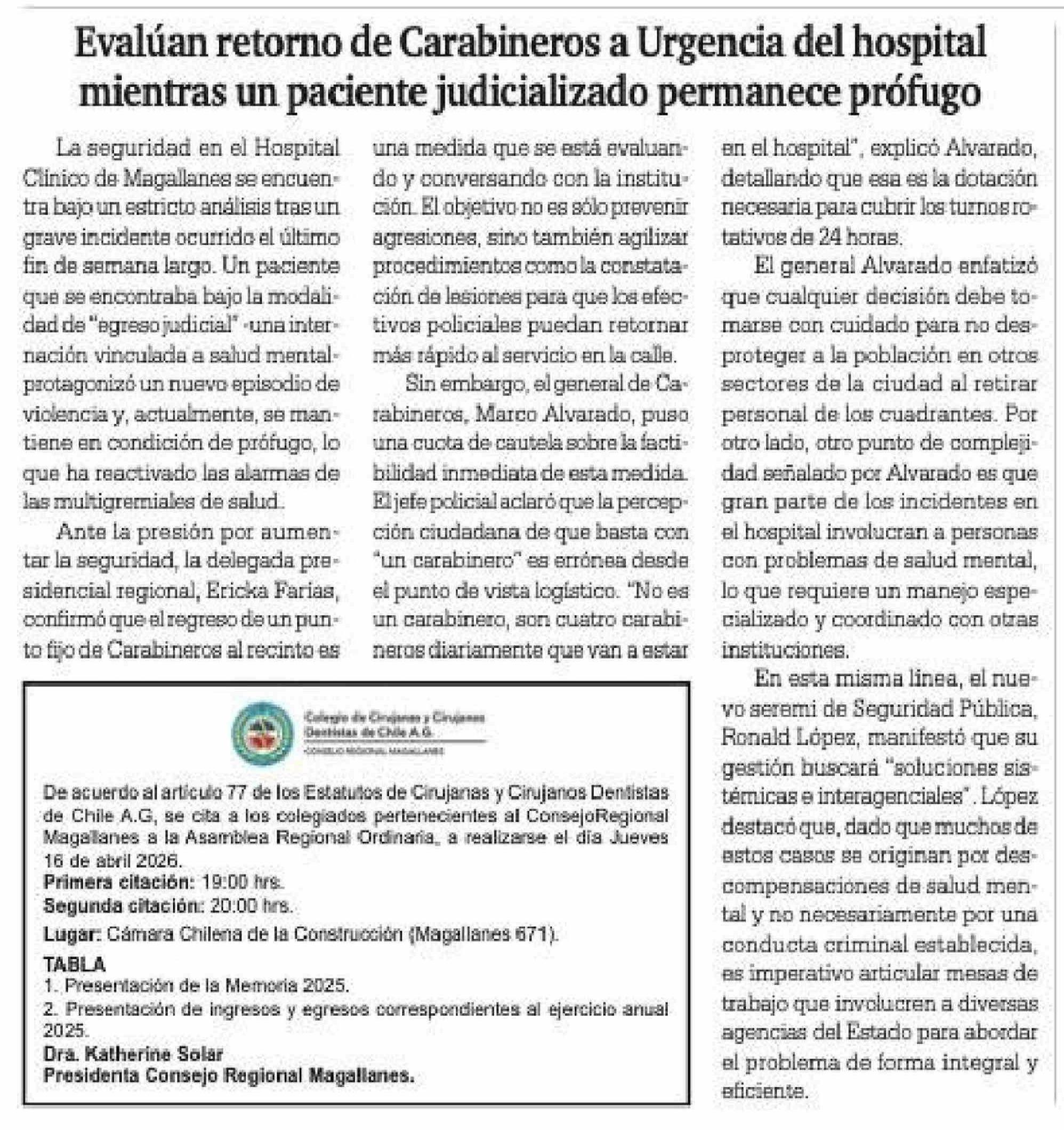 Fecha: 07-04-2026 Sector: Noticia general Región: Región de Magallanes y de la Antártica Chilena