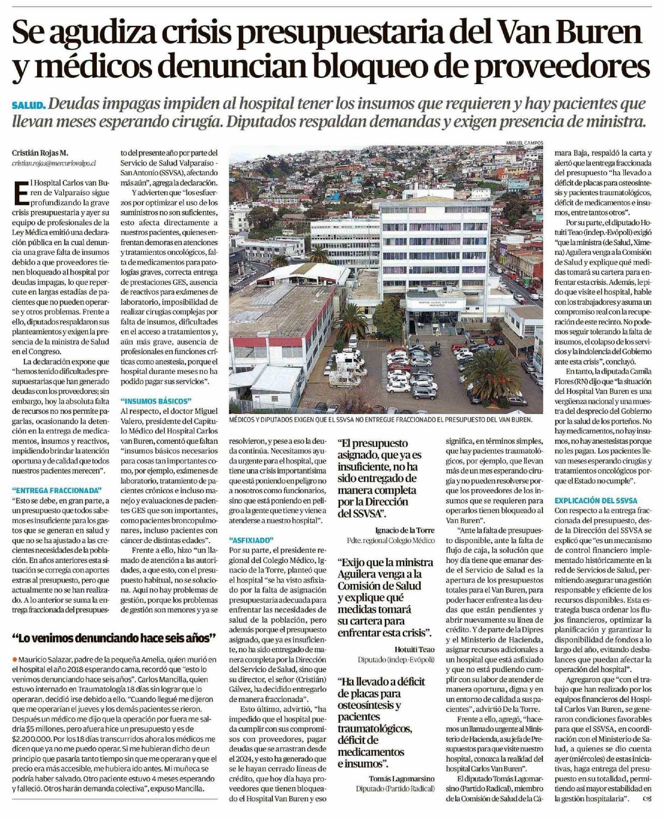 Título: Se agudiza crisis presupuestaria del Van Buren y médicos denuncian bloqueo de proveedores