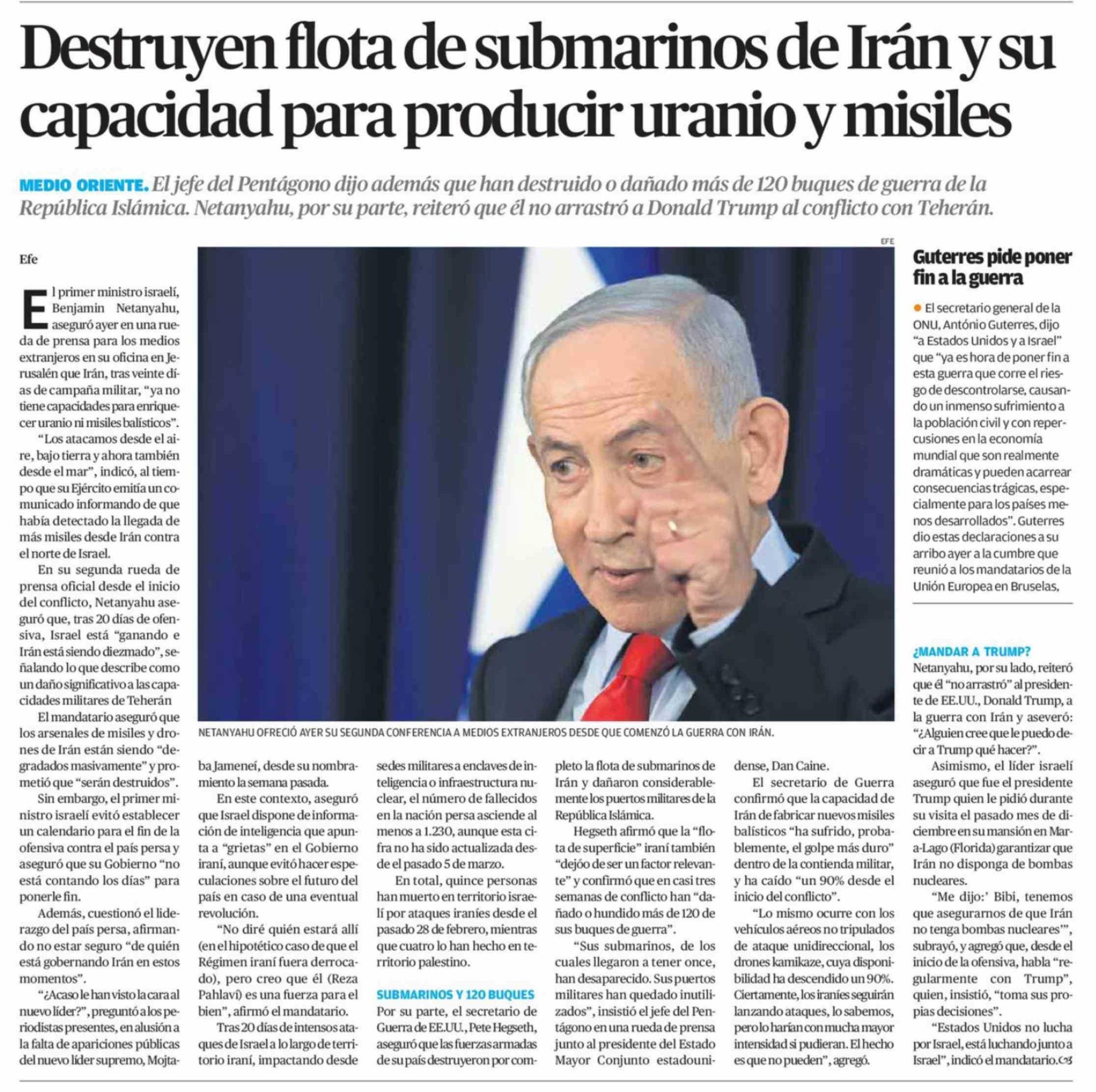 Título: Destruyen flota de submarinos de Irán y su capacidad para producir uranio y misiles