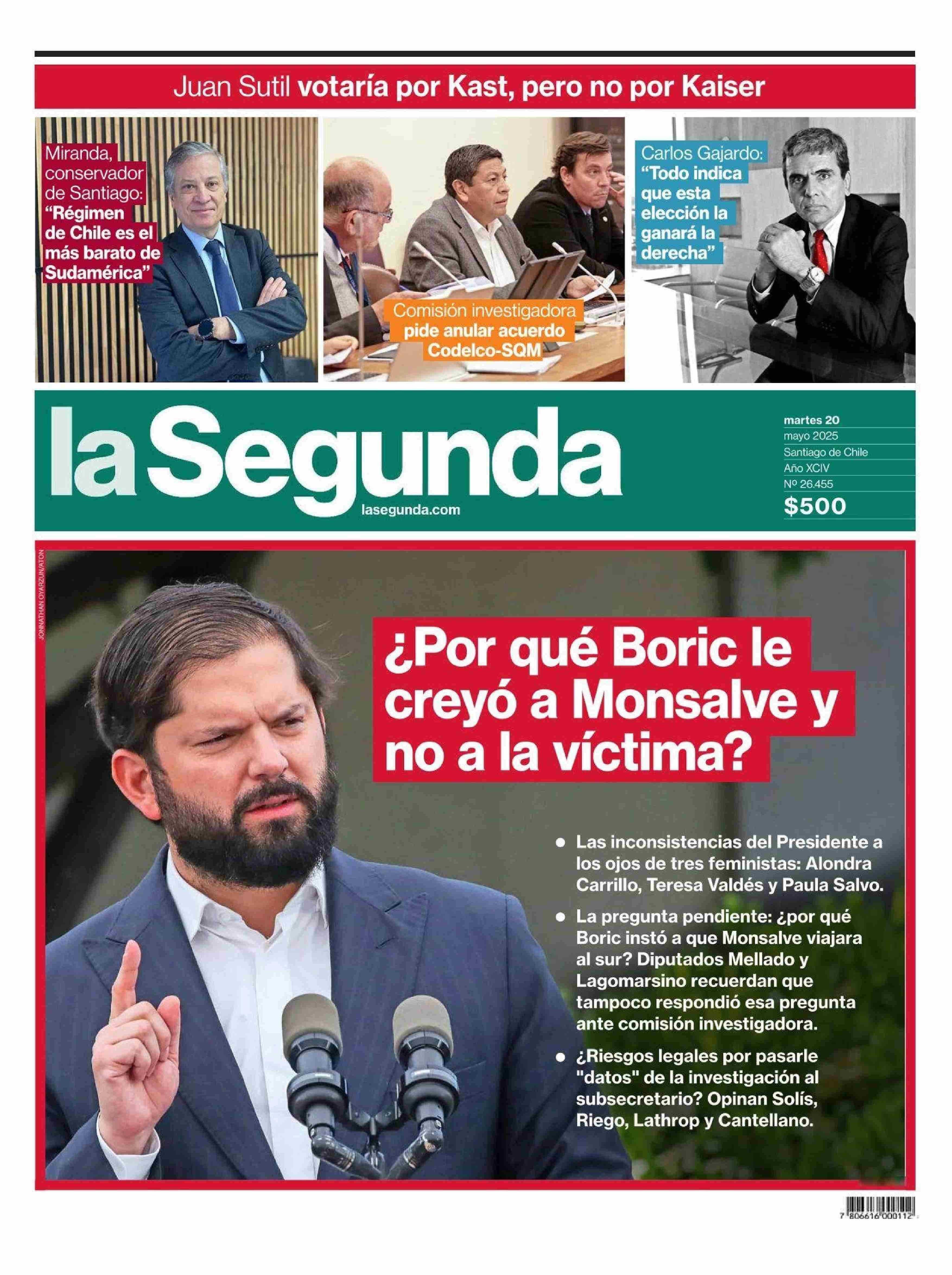 PORTADA LA SEGUNDA - CHILE 20-05-2025 La Segunda |