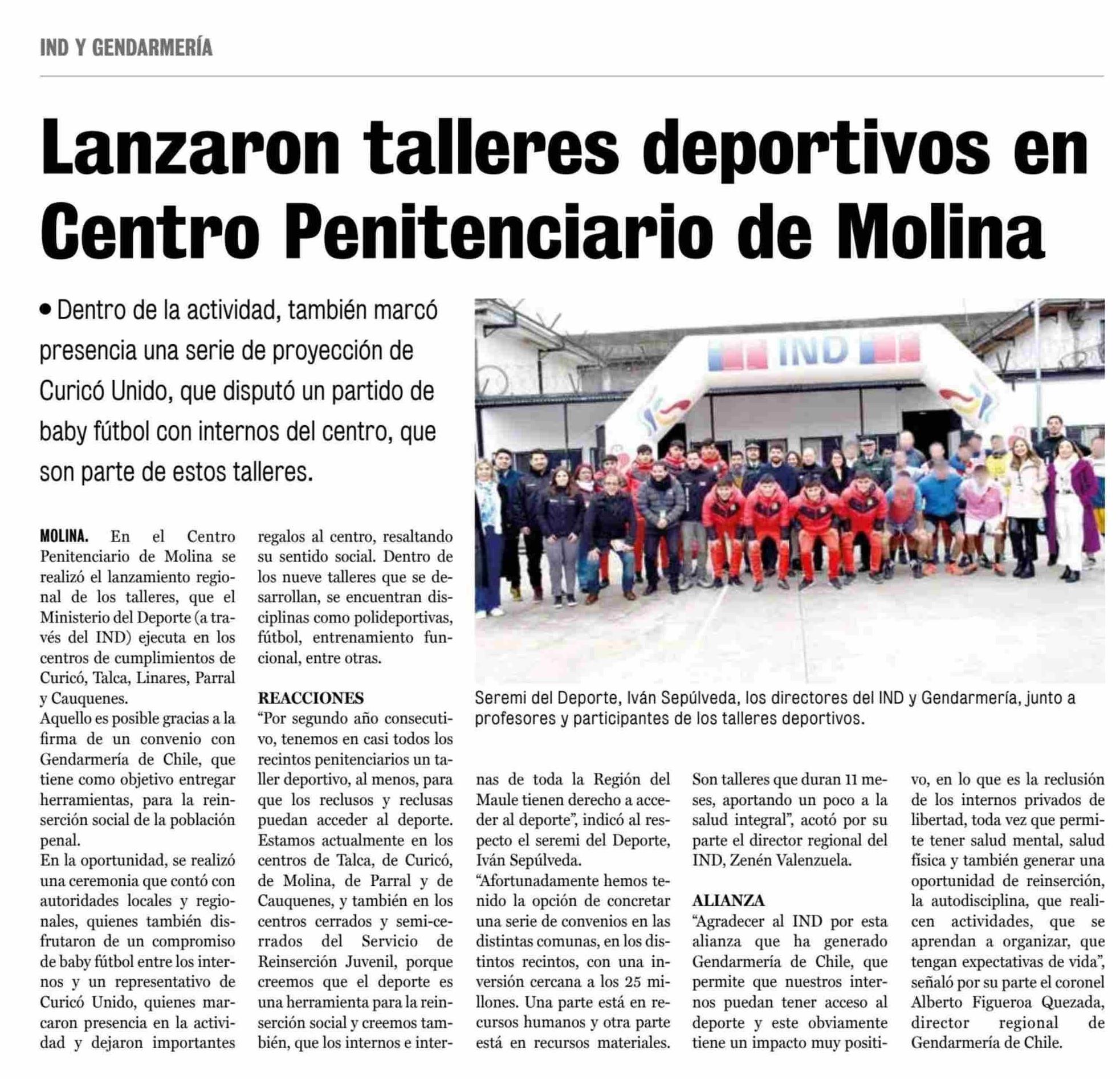 Lanzaron talleres deportivos en Centro Penitenciario de Molina 02-06-2025 La Prensa de Curicó |