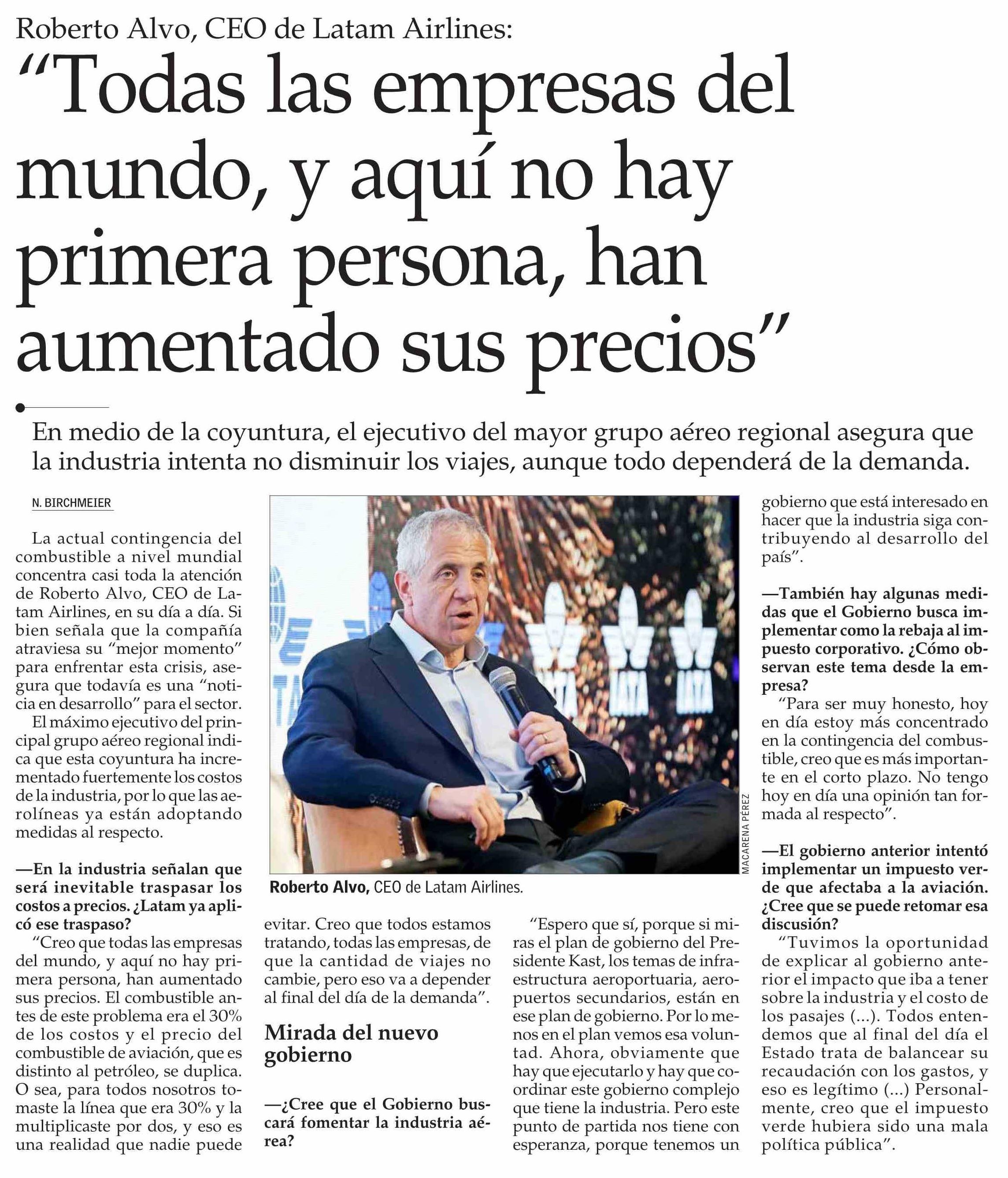 “Todas las empresas del mundo, y aquí no hay primera persona, han aumentado sus precios” 13-04-2026 El Mercurio |