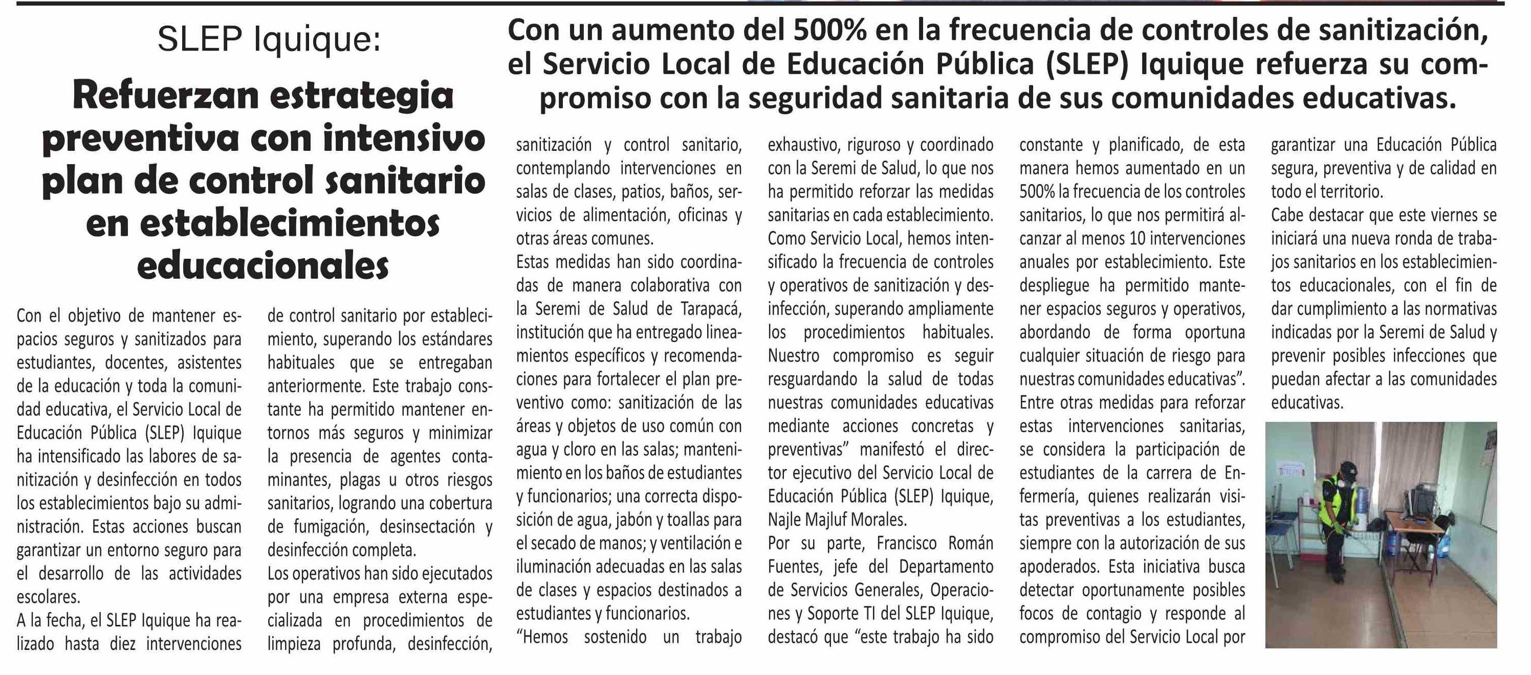 | Título: | Refuerzan estrategia preventiva con intensivo plan de control sanitario en establecimientos educacionales |