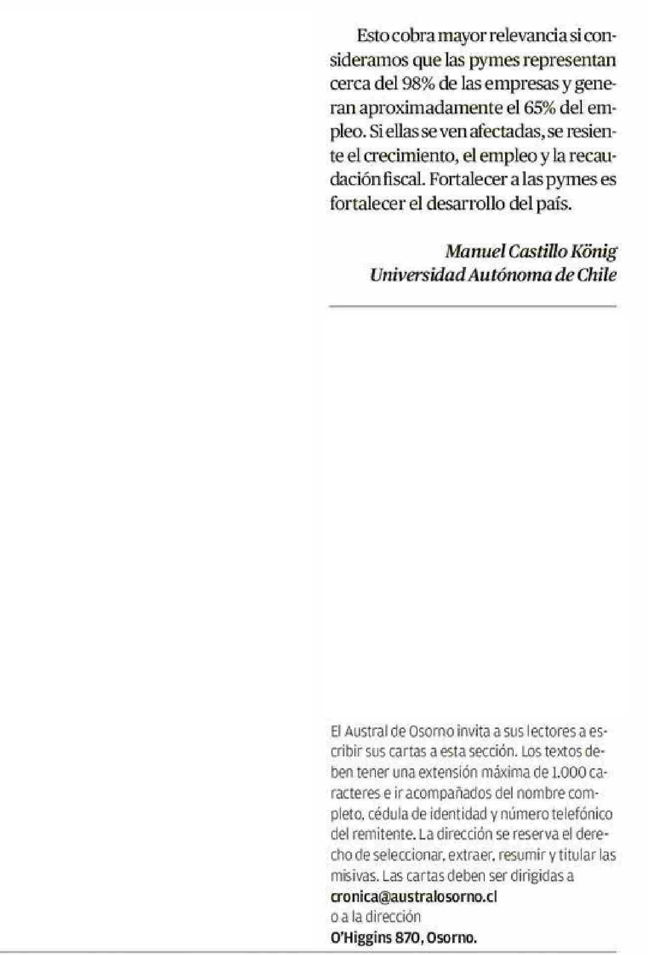 CARTAS: Alivio a las pymes 17-04-2026 El Austral de Osorno |