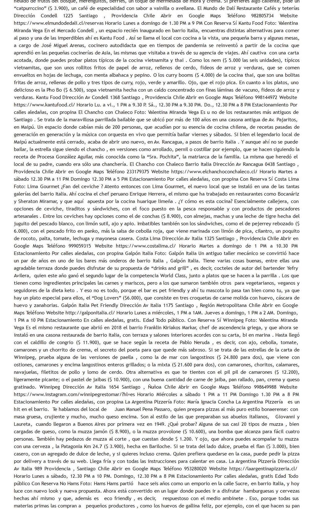 20 buenos restaurantes para probar en tus paseos por barrio Italia 24-06-2022 La Tercera.com (Stgo - Chile) |