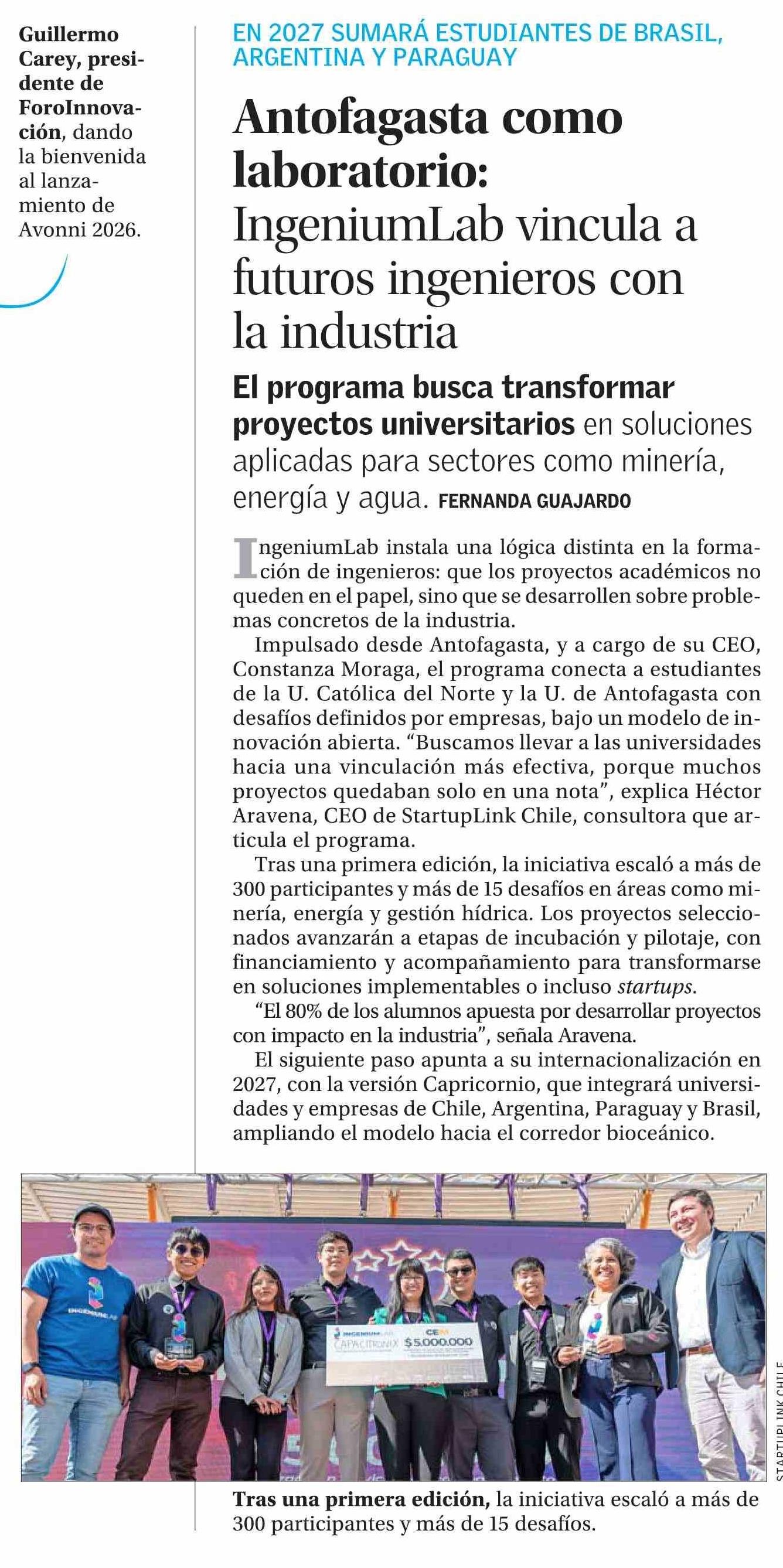 Título: Antofagasta como laboratorio: IngeniumLab vincula a futuros ingenieros con la industria