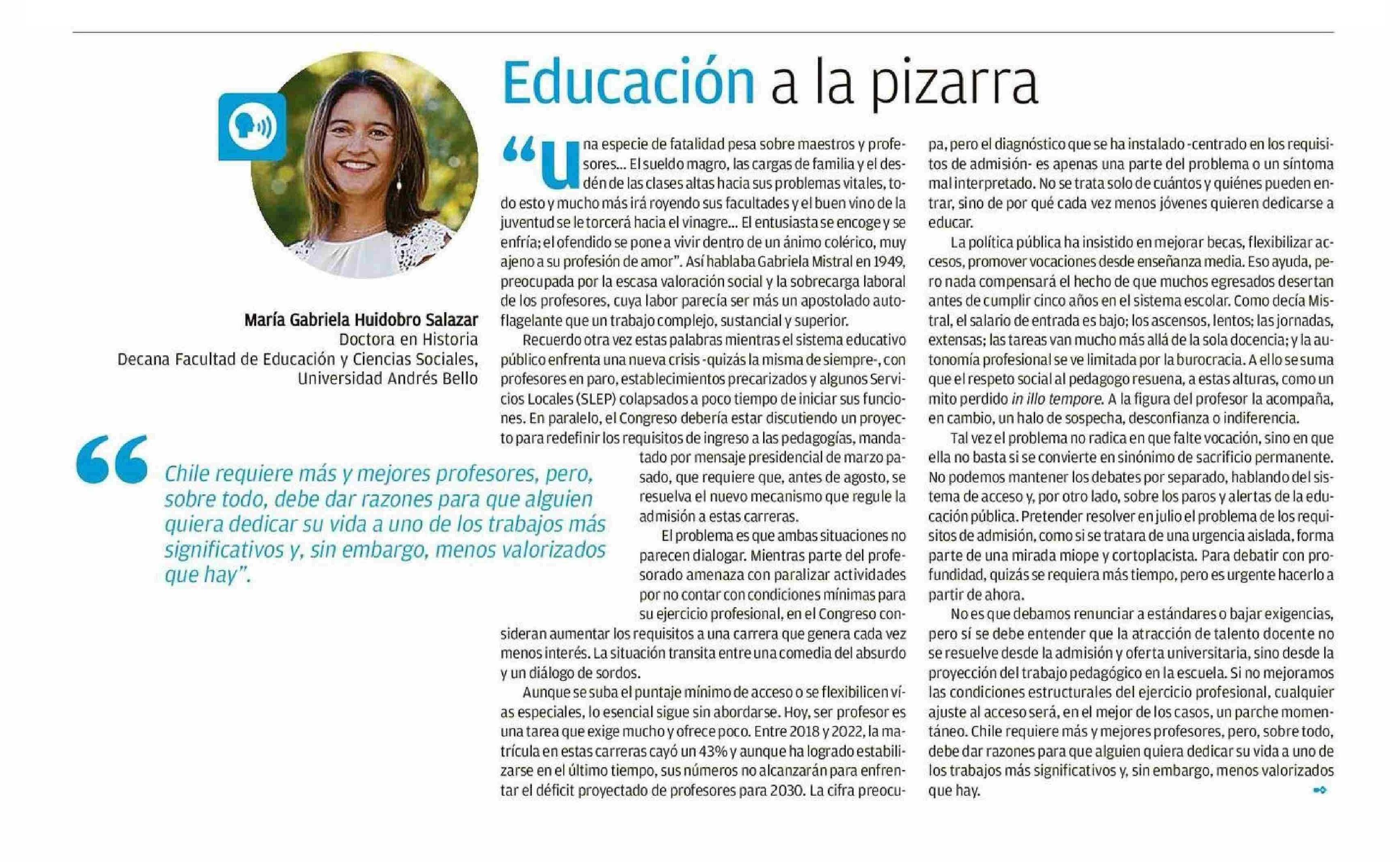 COLUMNAS DE OPINIÓN: Educación a la pizarra 15-06-2025 El Mercurio de Valparaíso |