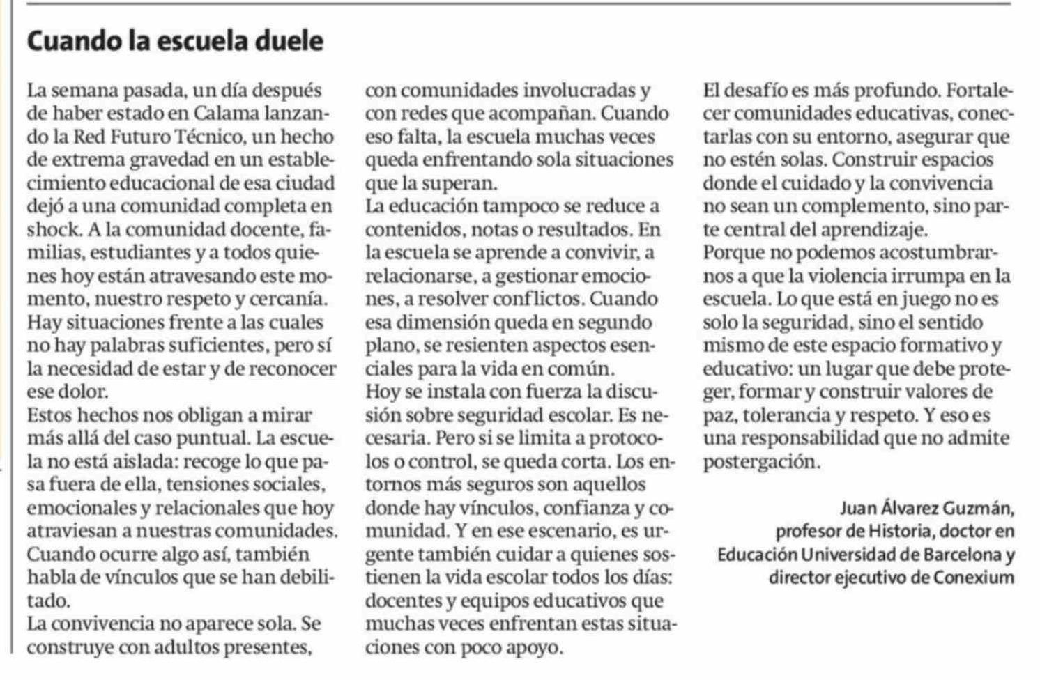 Cartas: Cuando la escuela duele 01-04-2026 La Estrella de Iquique |
