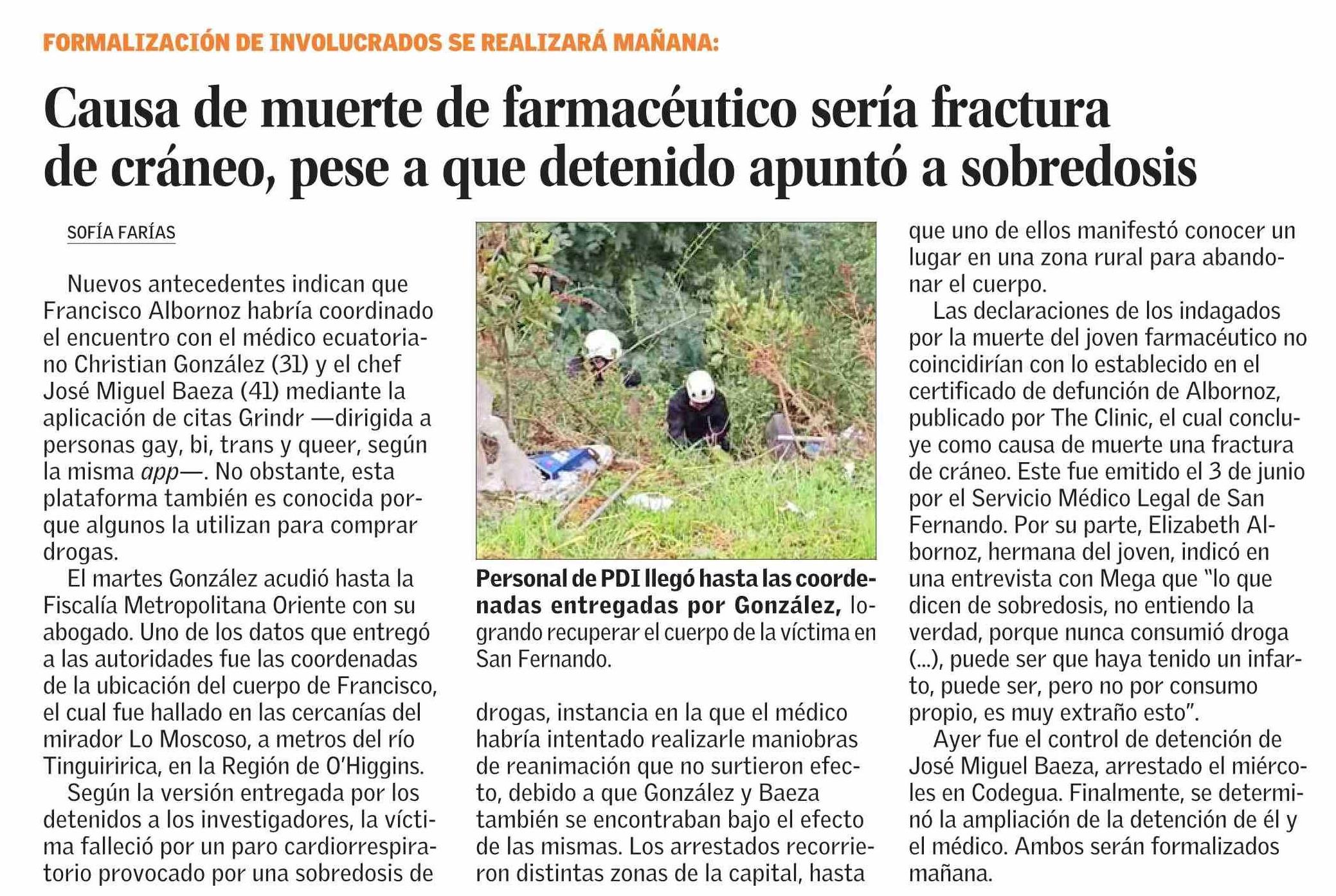 Causa de muerte de farmacéutico sería fractura de cráneo, pese a que detenido apuntó a sobredosis 06-06-2025 El Mercurio |