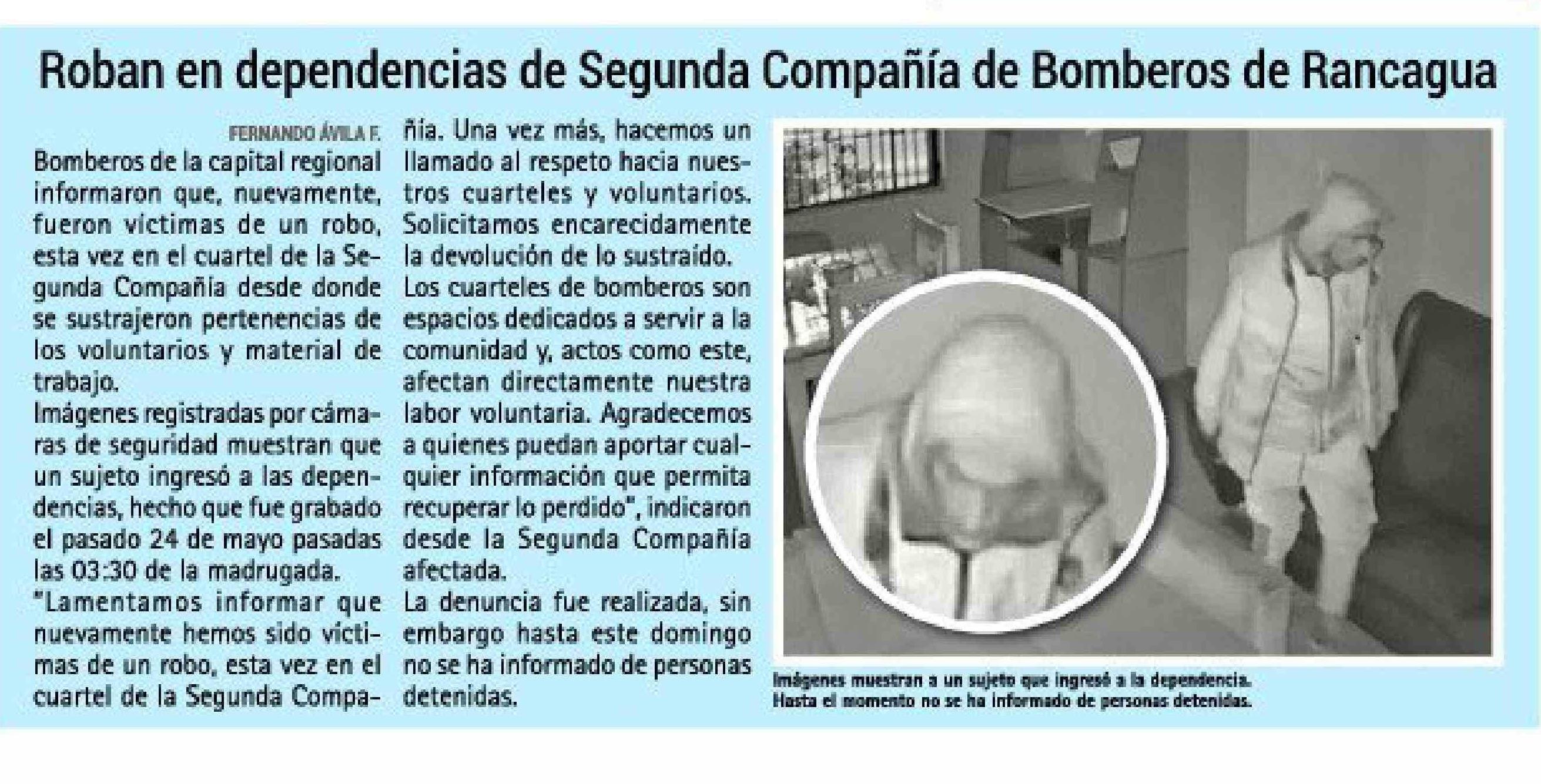 | Título: | Roban en dependencias de Segunda Compañía de Bomberos de Rancagua |
