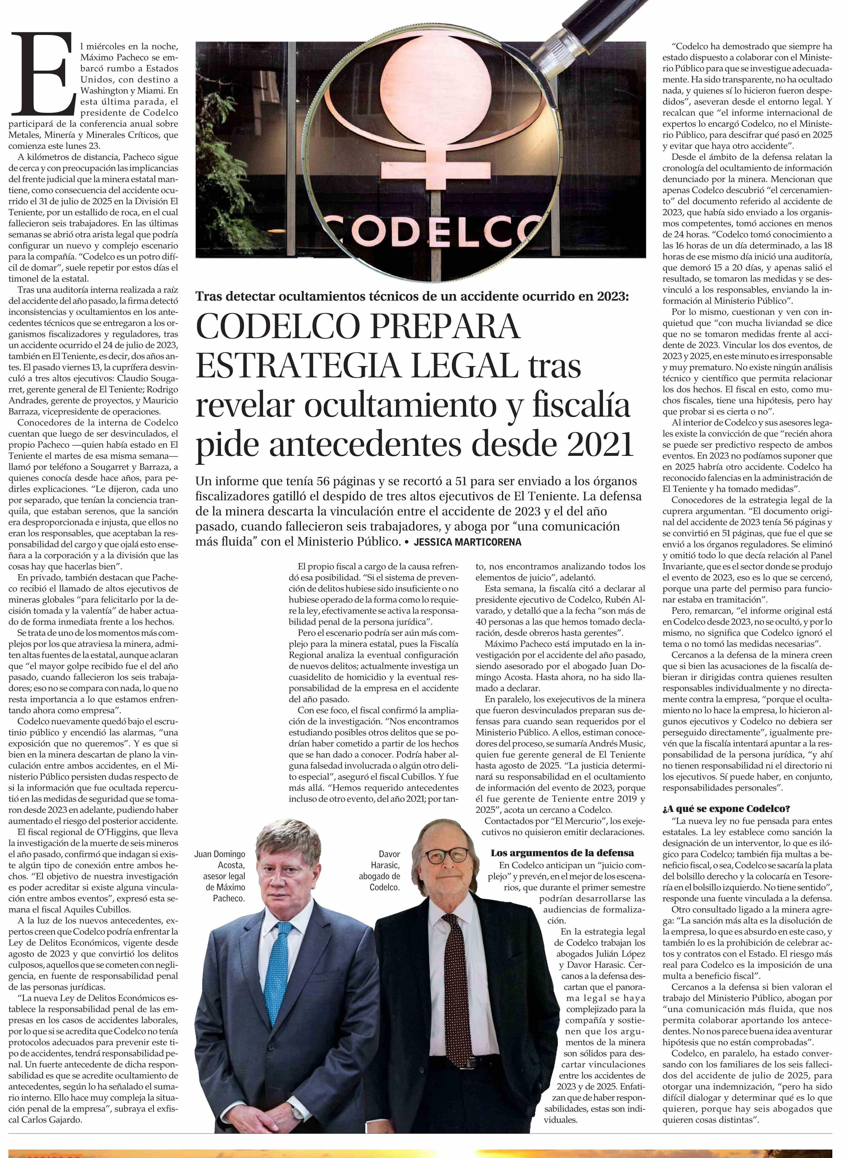 Título: CODELCO PREPARA ESTRATEGIA LEGAL tras revelar ocultamiento y fiscalía pide antecedentes desde 2021