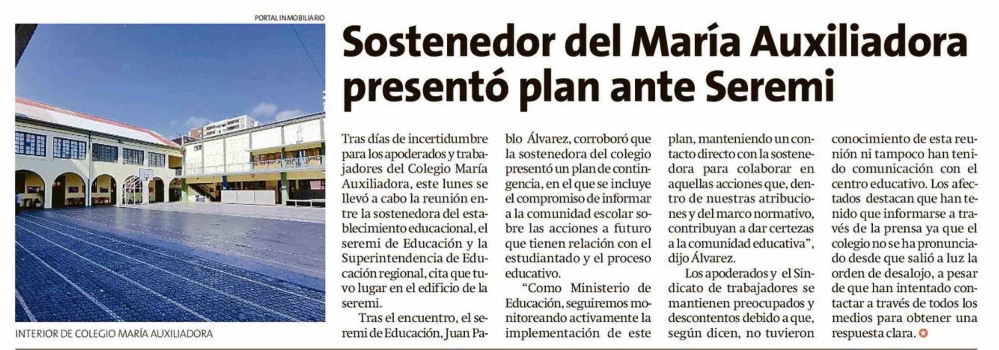 Título: Sostenedor del María Auxiliadora presentó plan ante Seremi