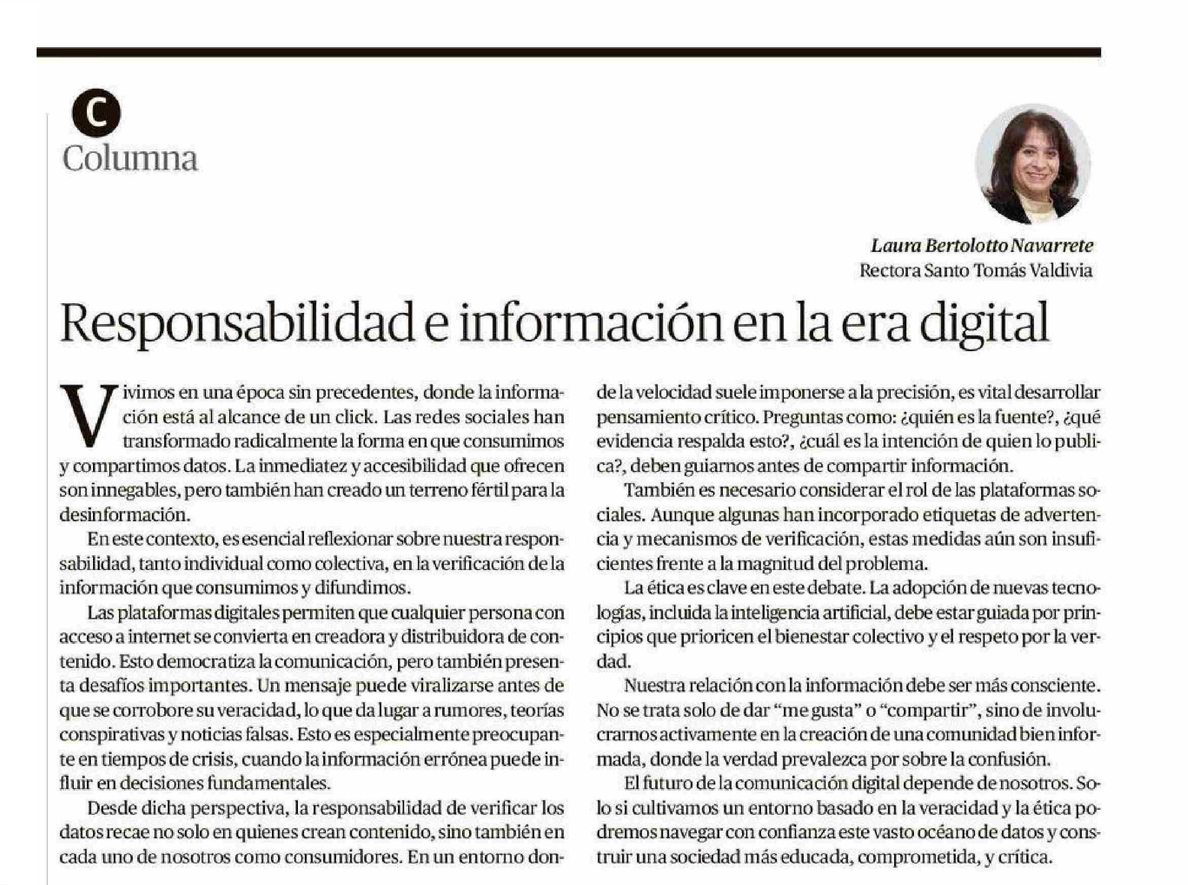 COLUMNAS DE OPINIÓN: Responsabilidad e información en la era digital 10-06-2025 Diario Austral Región de Los Ríos |