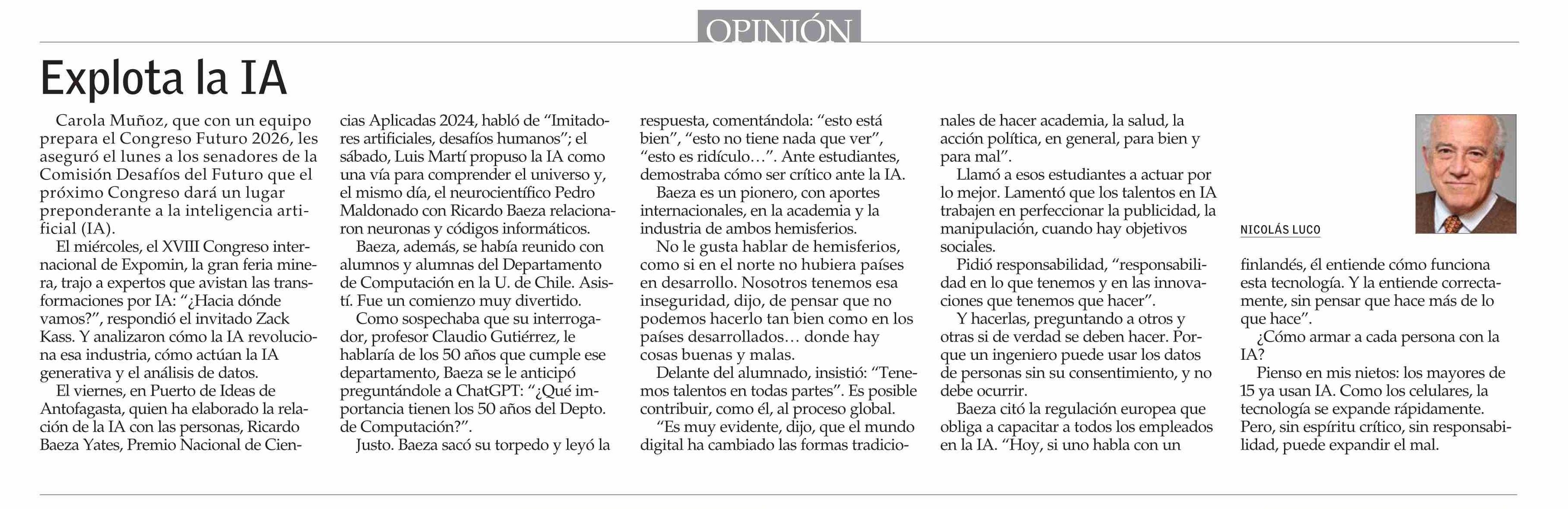 COLUMNAS DE OPINIÓN: Explota la IA 28-04-2025 El Mercurio |