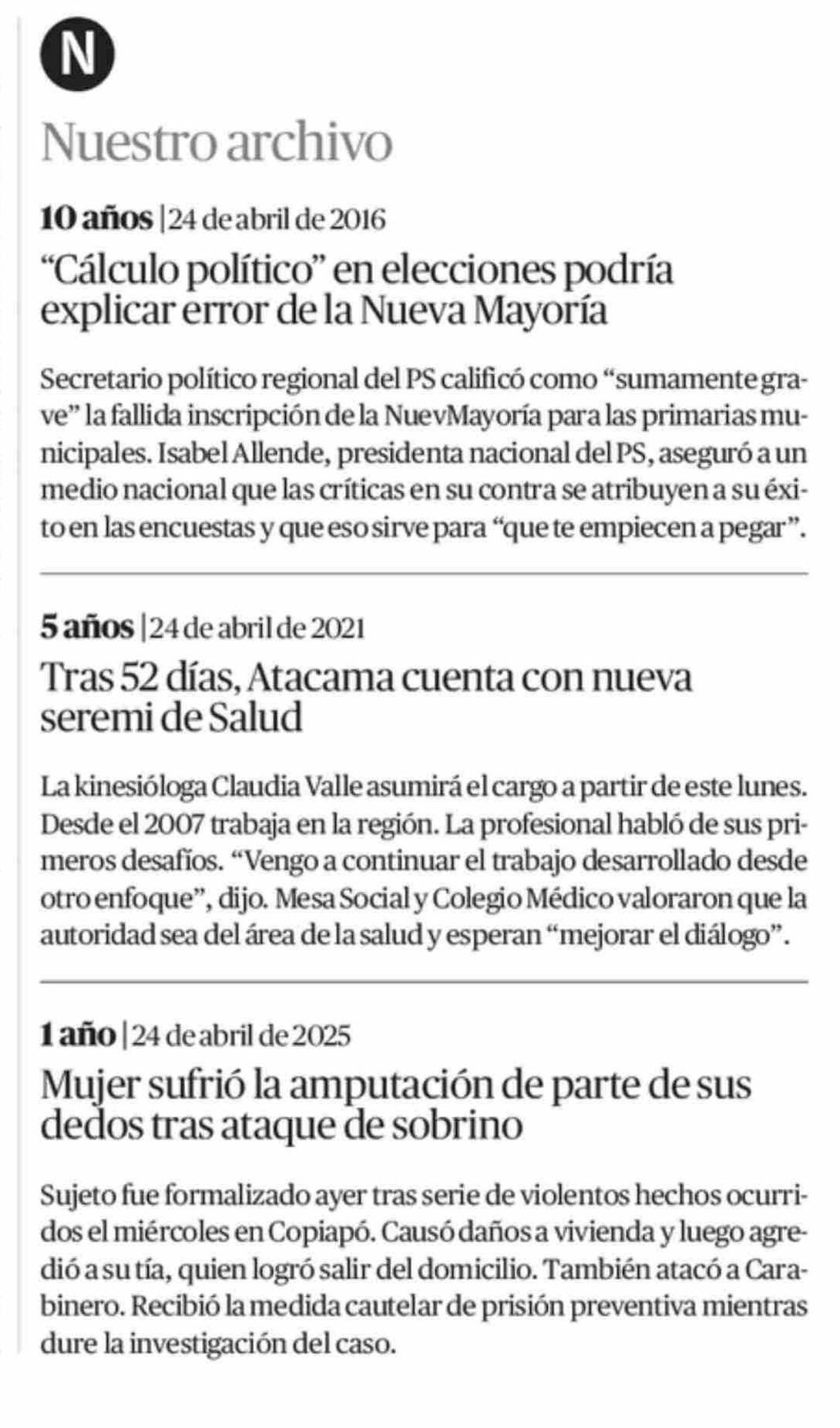 Nuestro archivo 24-04-2026 El Diario de Atacama |