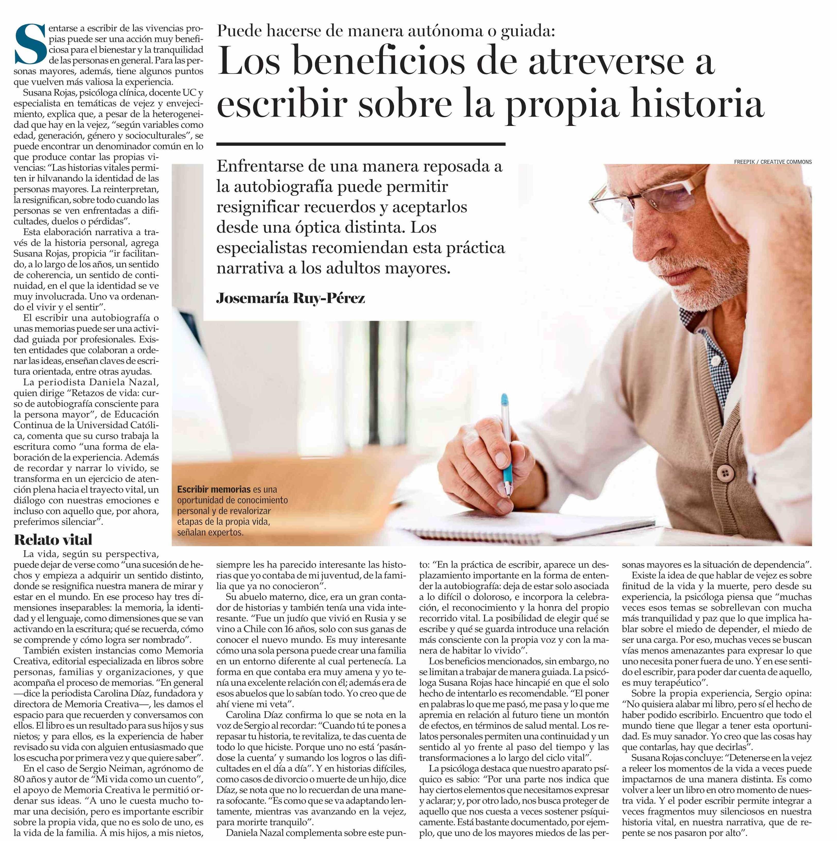 Los beneficios de atreverse a escribir sobre la propia historia 20-04-2026 El Mercurio |