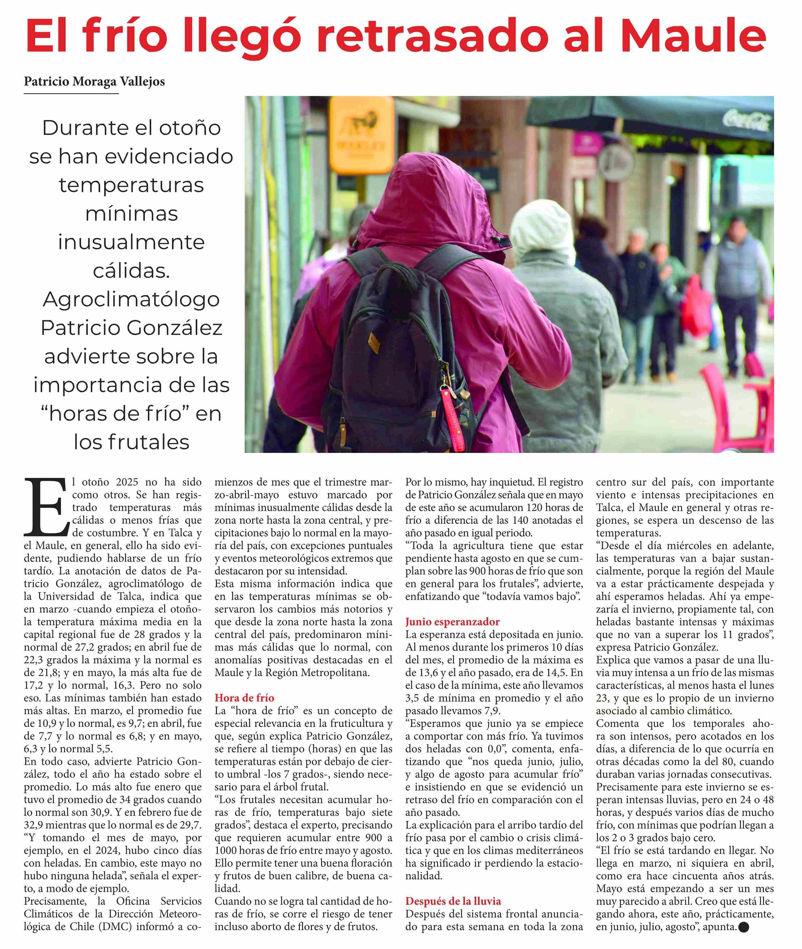 El frío llegó retrasado al Maule 14-06-2025 Diario Talca |