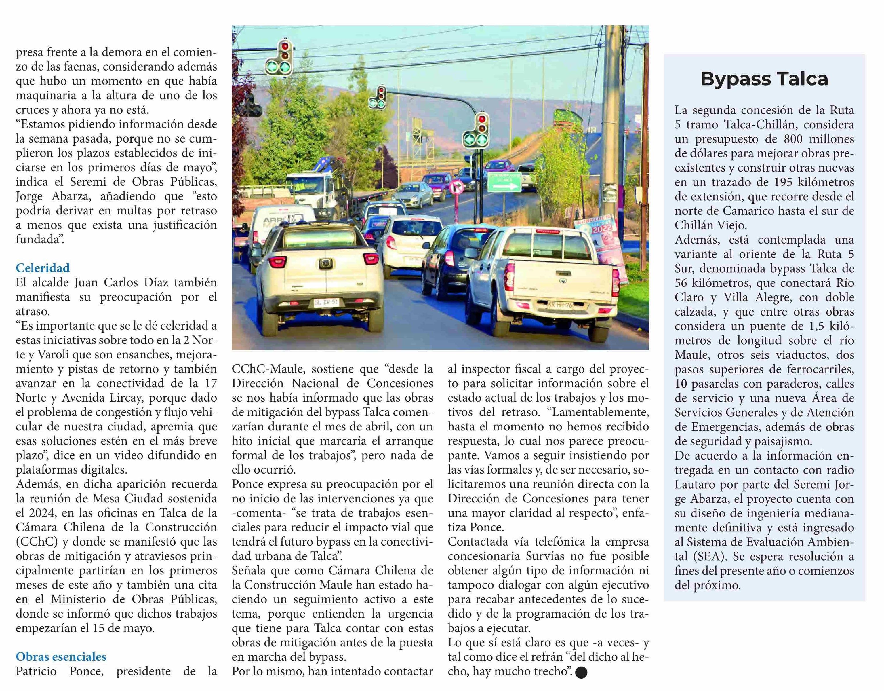 | Título: | Mejoramiento de los enlaces en Talca sin inicio de obras ni explicación por el atraso |
