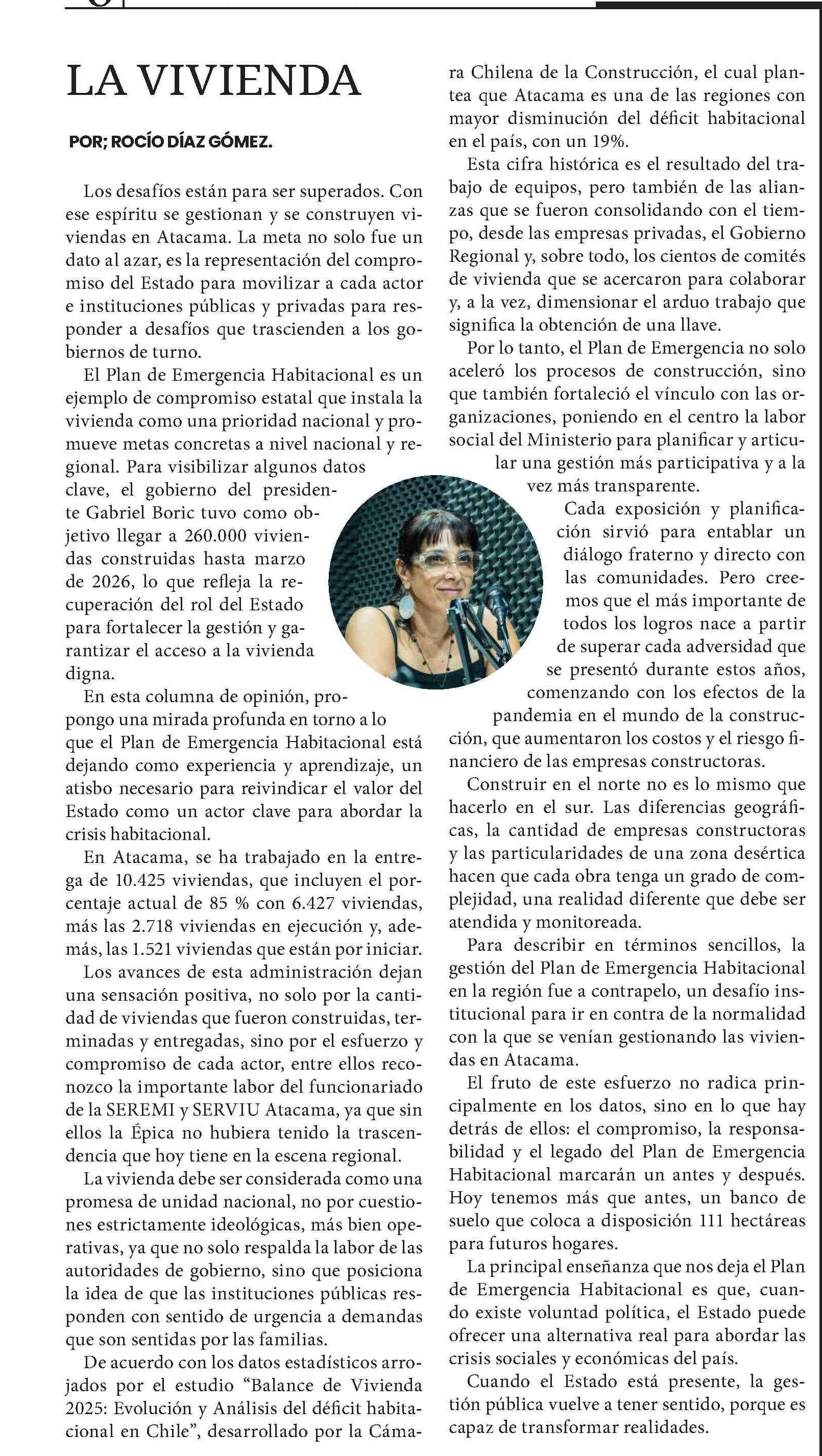 COLUMNAS DE OPINIÓN: LA VIVIENDA 04-03-2026 Diario Chañarcillo |