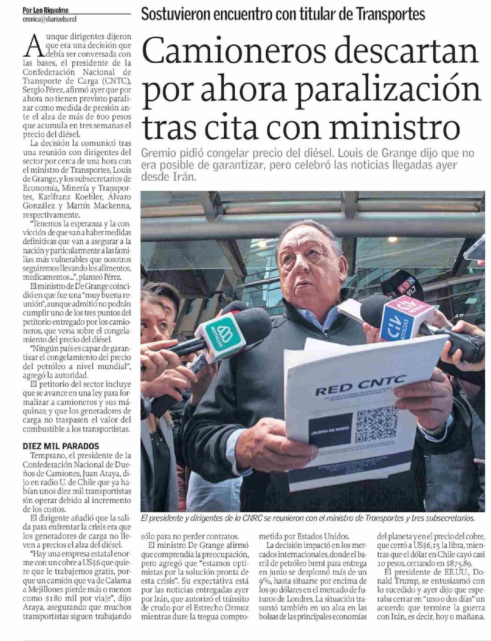 Título: Camioneros descartan por ahora paralización tras cita con ministro
