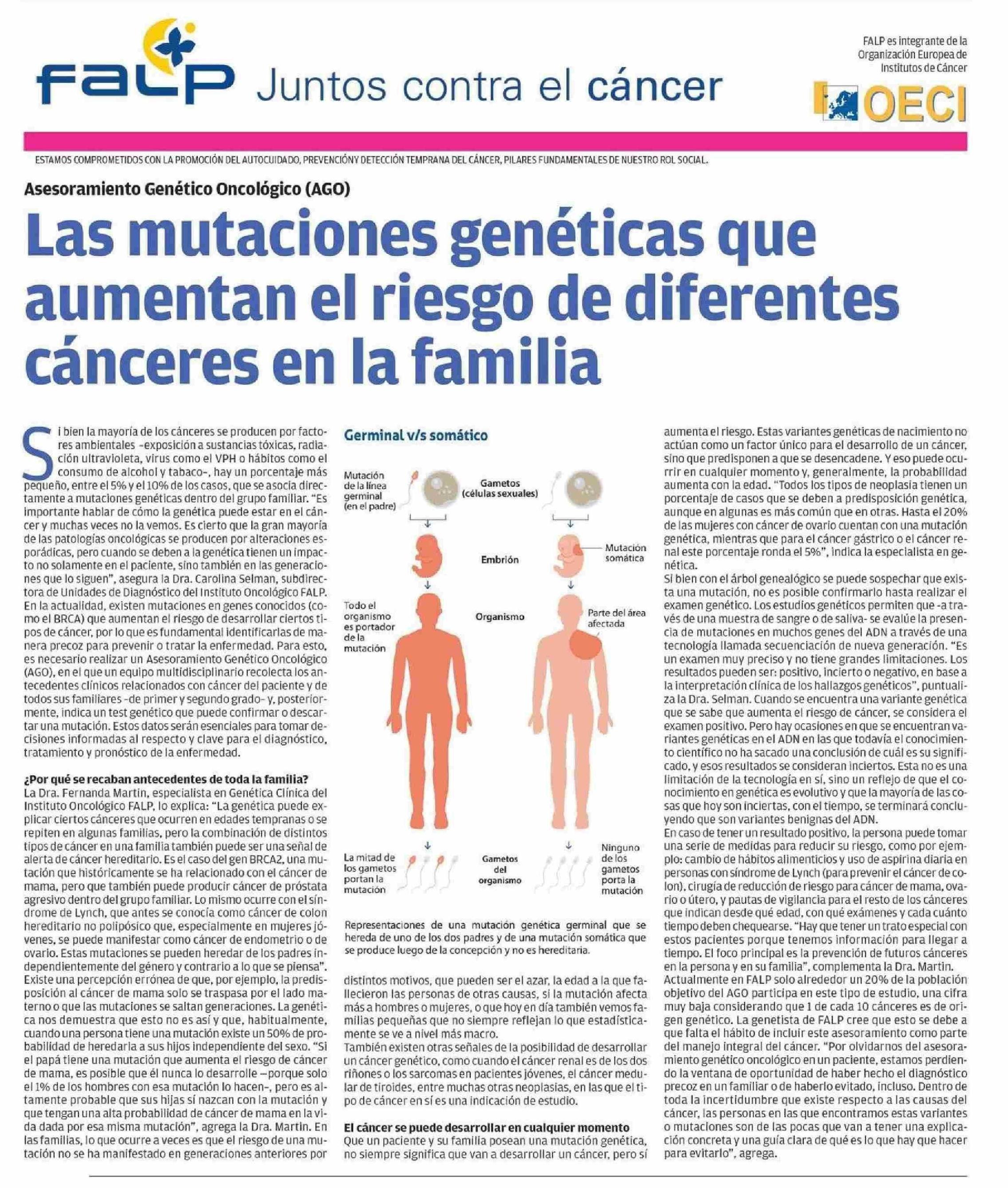 Las mutaciones genéticas que aumentan el riesgo de diferentes cánceres en la familia 25-05-2025 El Mercurio de Antofagasta |