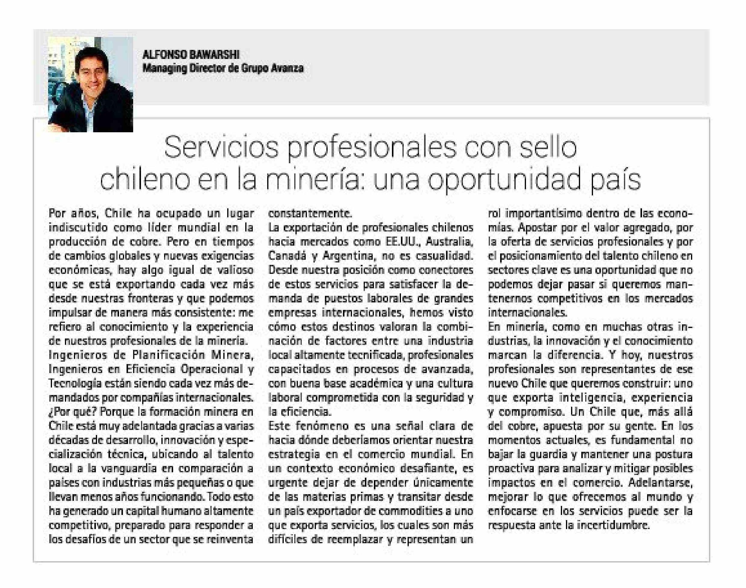 Servicios profesionales con sello chileno en la minería: una oportunidad país 13-06-2025 El Rancagüino |