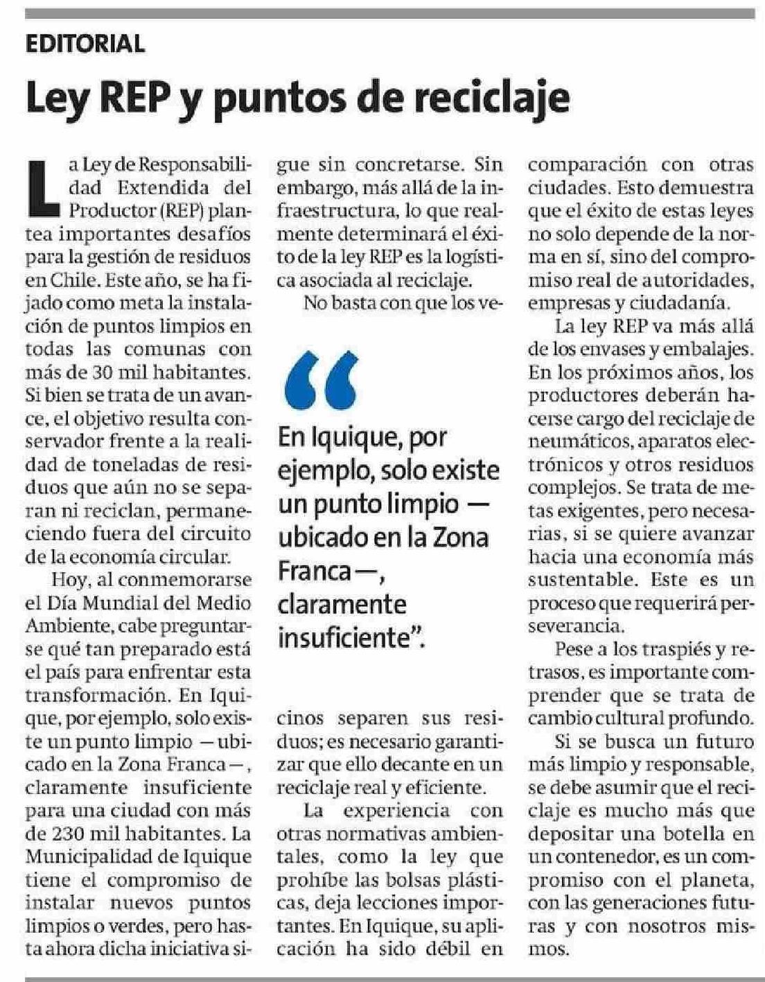 Fecha: 05-06-2025 Sector: Editorial Región: Región de Tarapacá